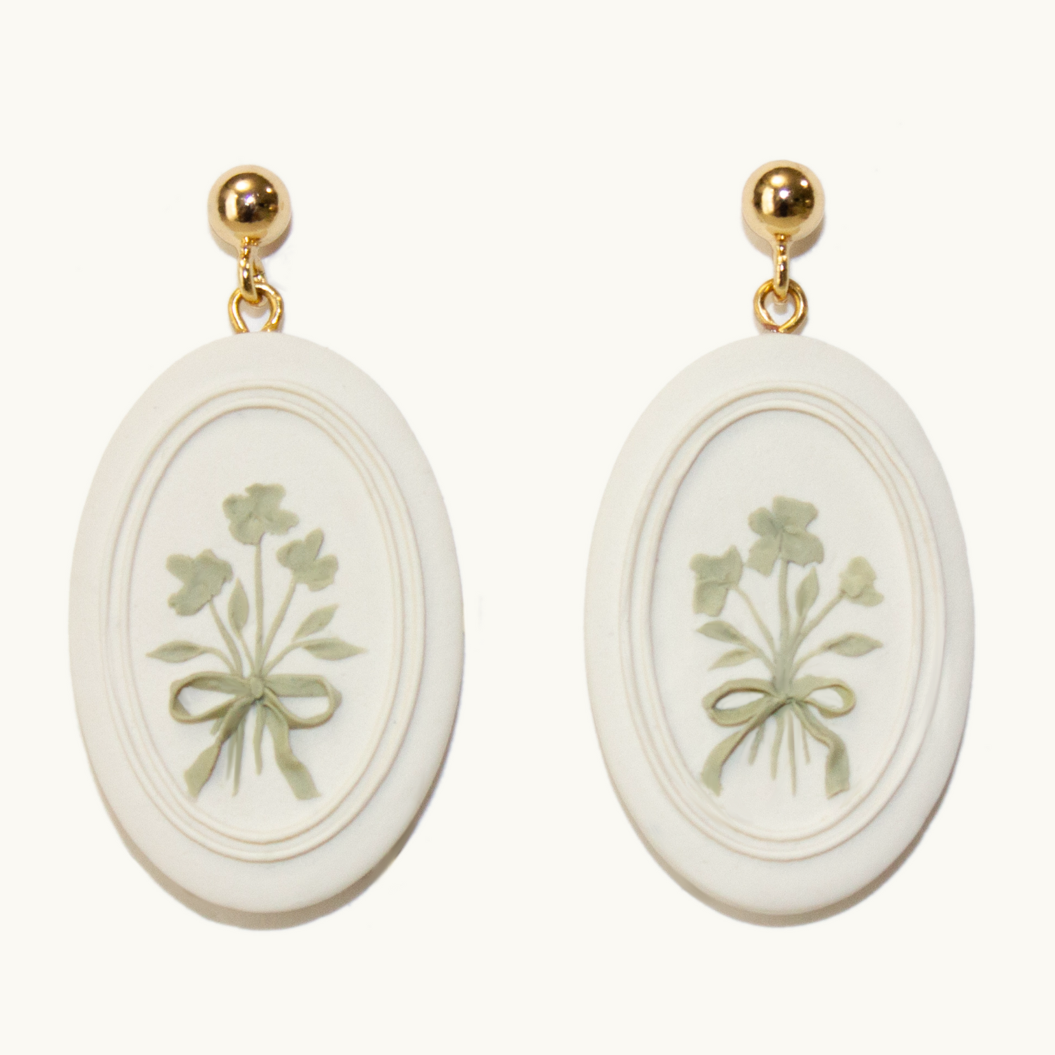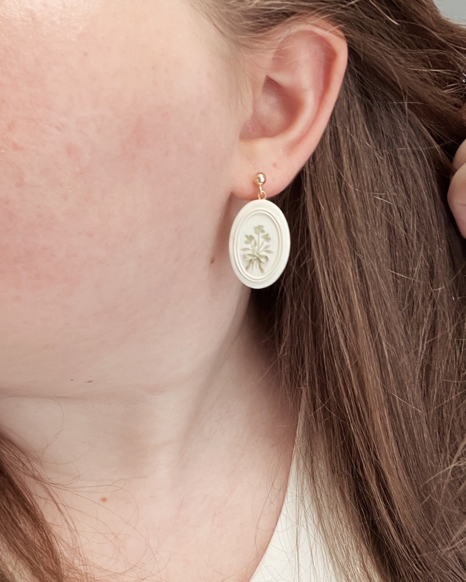 Materials:Polymer clay, resin, gold filled wire, gold filled ear post