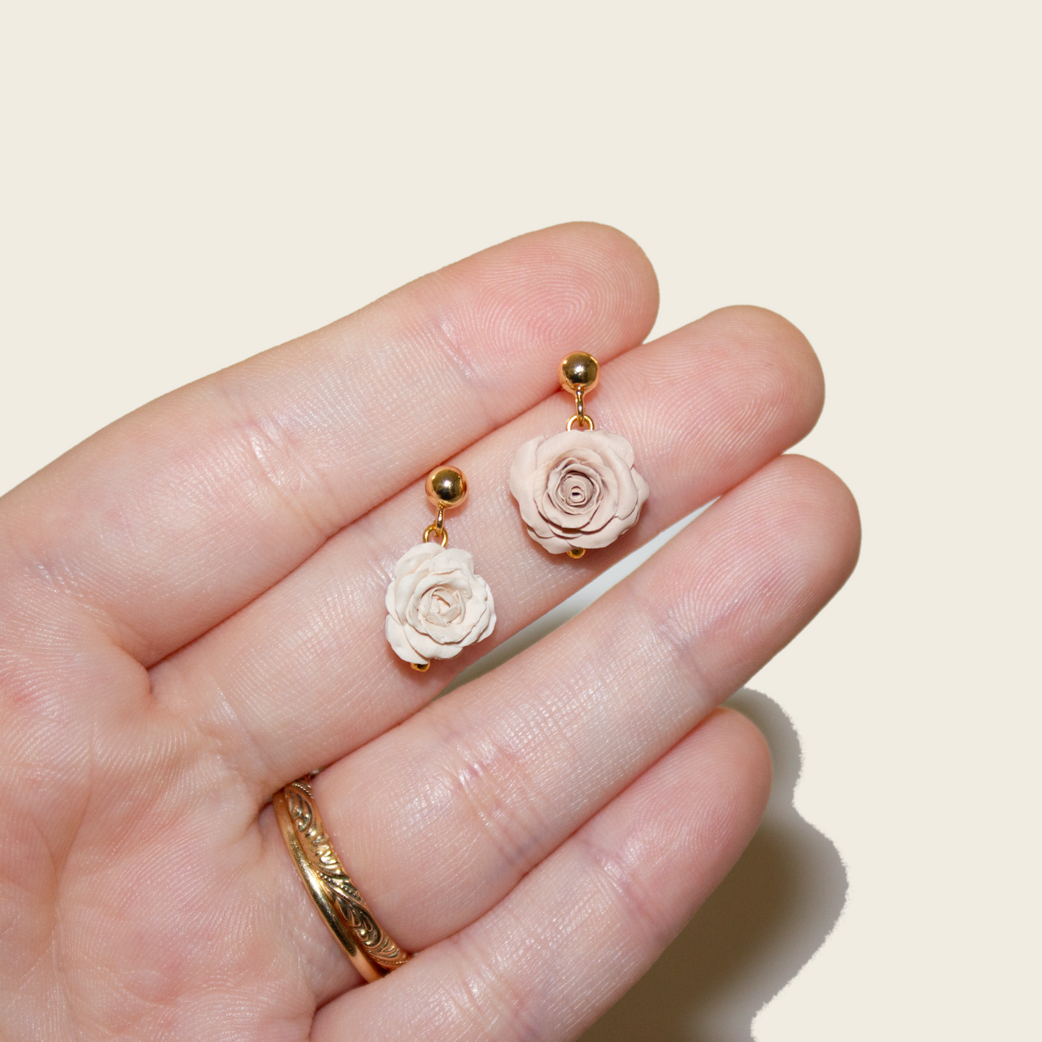 I'm SO surprised i've never made little floral charms before! Isn't that crazy? Well we're starting off strong with a pair of little roses. The perfect mini floral statement :)