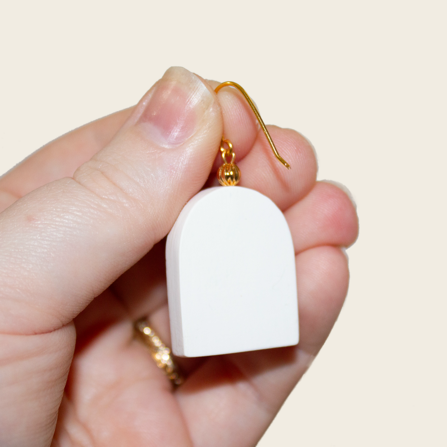 Materials: Polymer clay, resin, gold filled hook, gold filled wire, brass bead