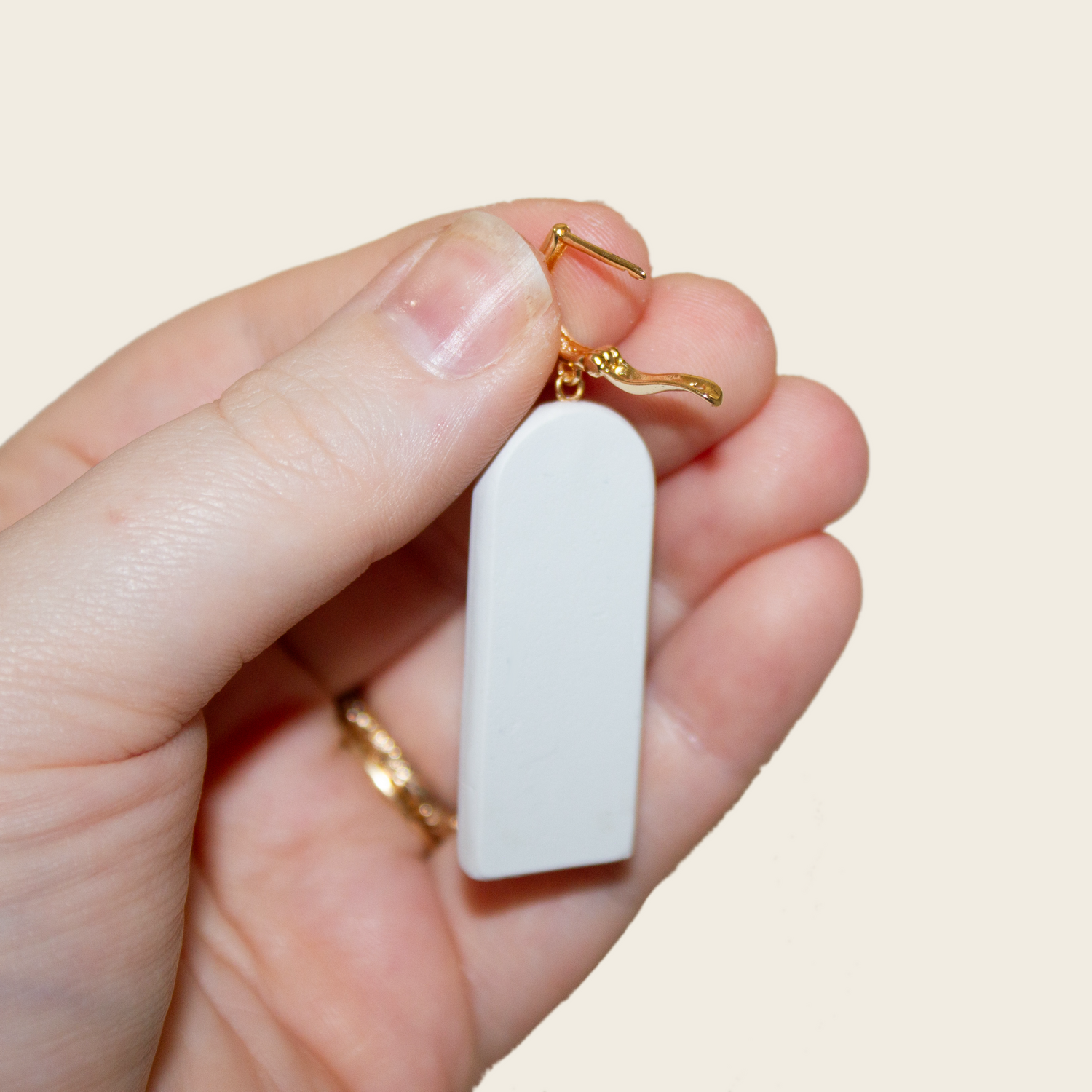 Materials: Polymer clay, resin, gold filled wire, gold filled earring post