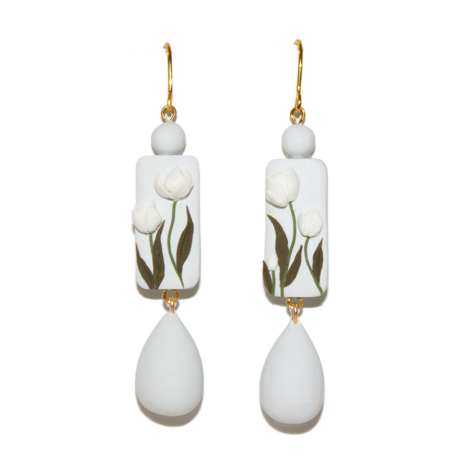 Materials: Polymer clay, resin, gold filled wire, gold filled earring hook