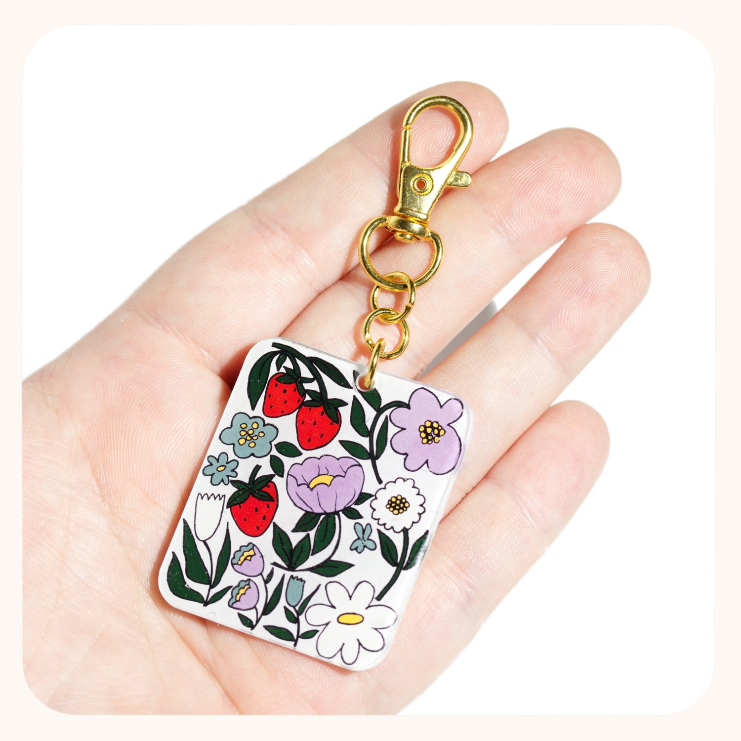 This keychain actually isn't made of clay, I've been experimenting with new mediums lately! The closest word I could use to describe it is acrylic. The finish is super glossy smooth and the piece itself is really durable!