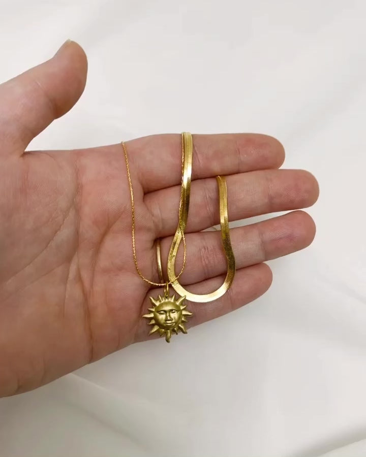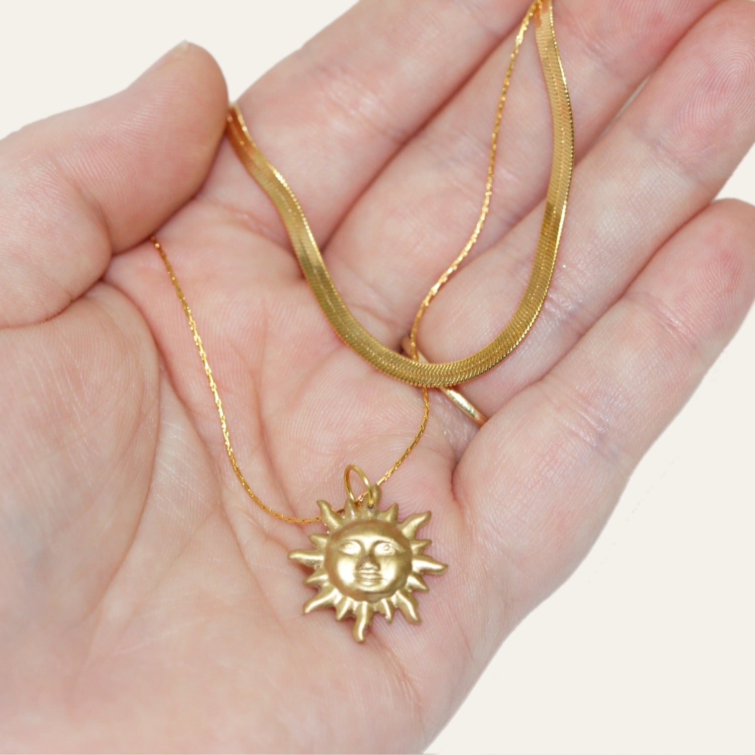 Added bonus- you can choose to make a stack! I have a really nice, dainty herringbone chain that I think pairs SO well with this necklace. It really elevates the sun design!