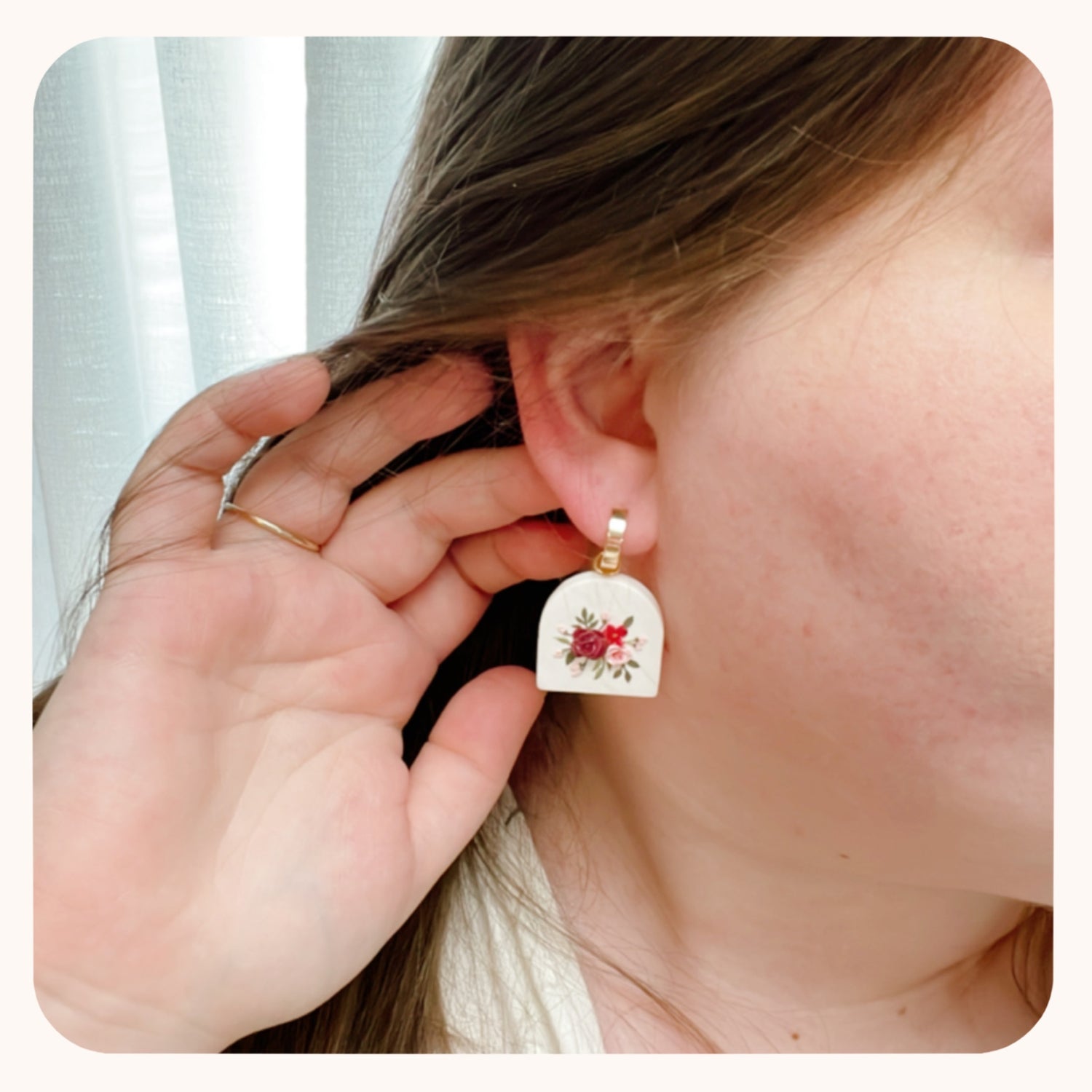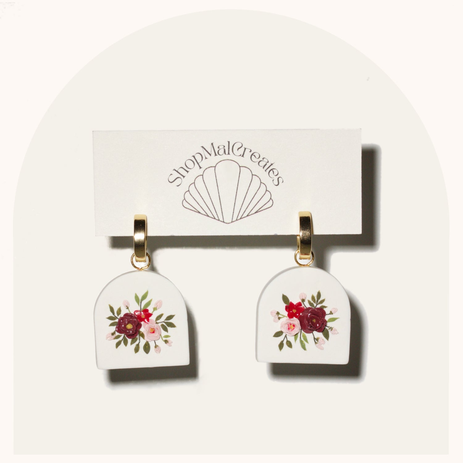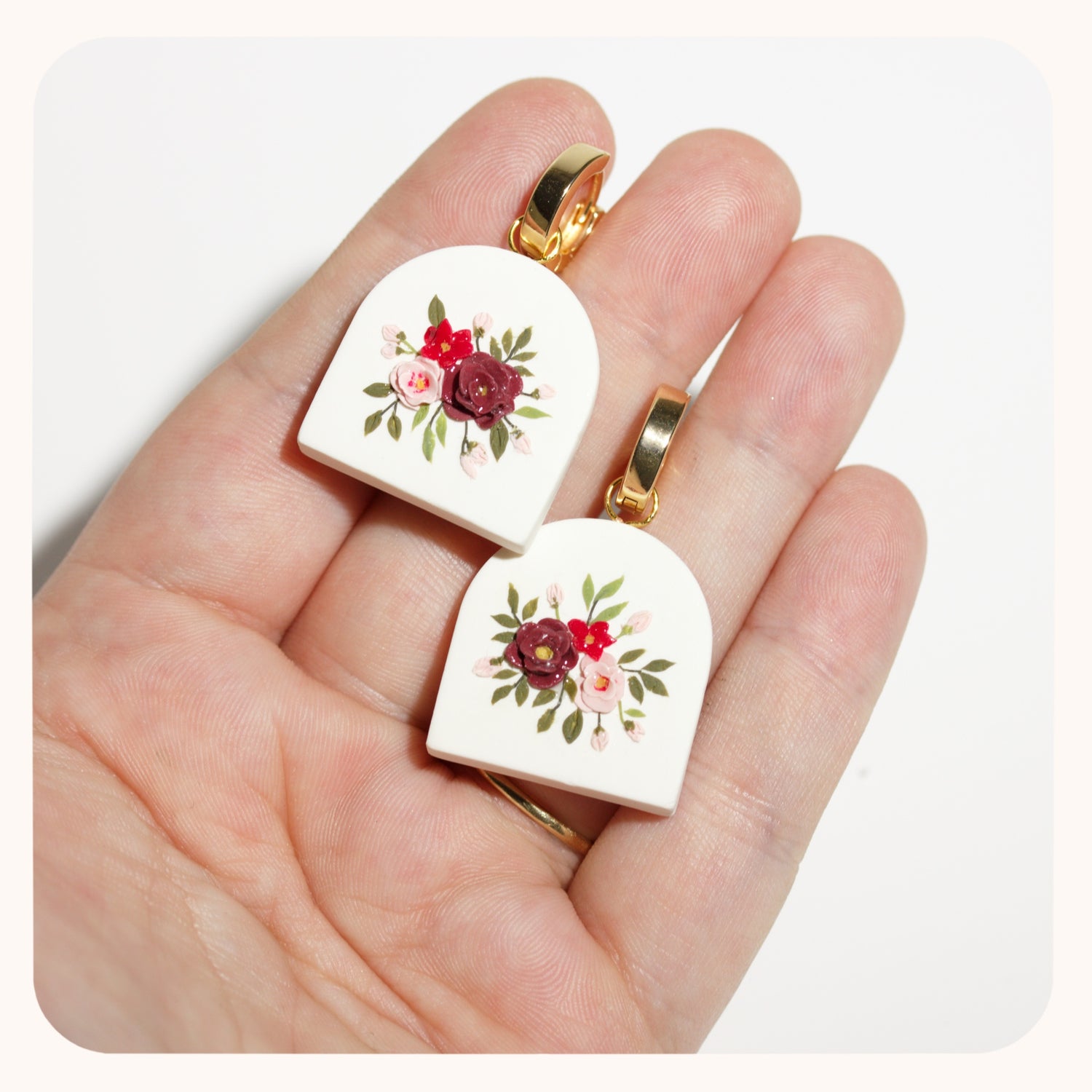 - These earrings are 100% polymer clay. I take special measures to ensure the petals and leaves stay where they're meant to be. I do recommend storing them in a safe place and treating them as you would treat any delicate, handmade jewelry!
