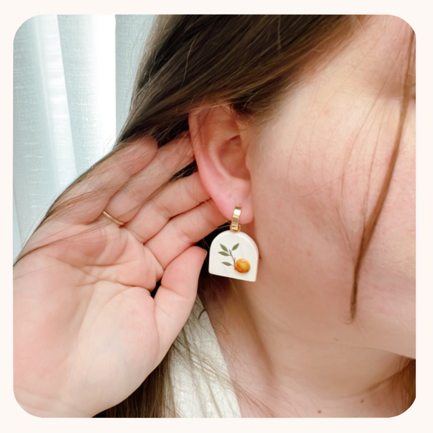 - These earrings are 100% polymer clay. I take special measures to ensure the petals and leaves stay where they're meant to be. I do recommend storing them in a safe place and treating them as you would treat any delicate, handmade jewelry!