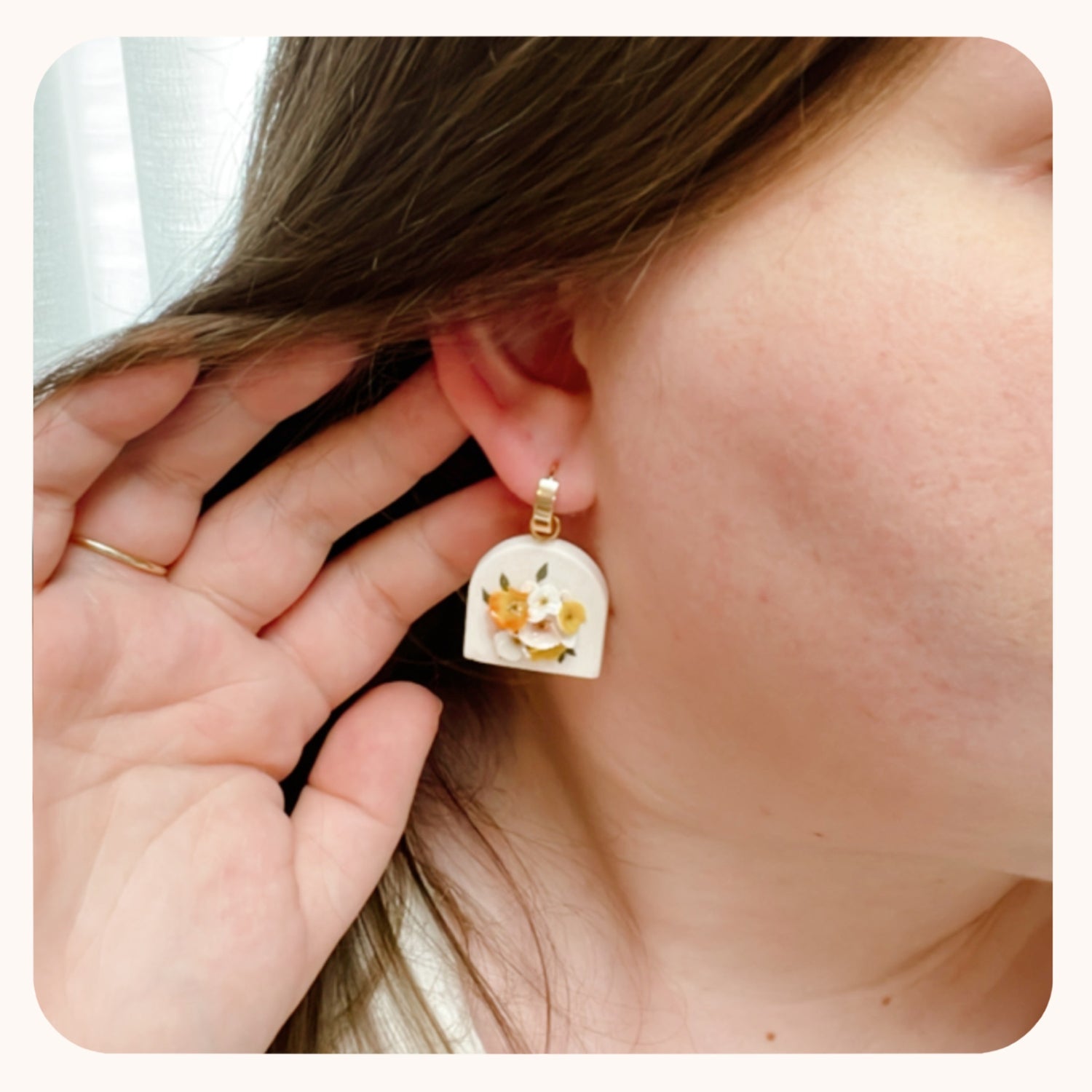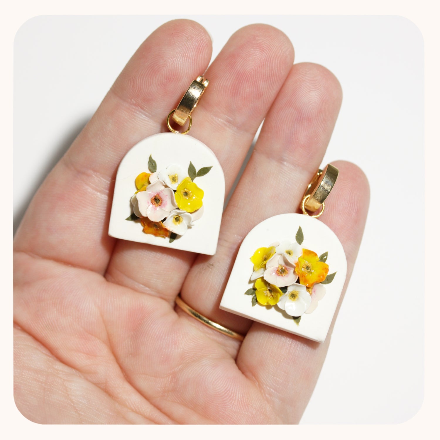 - These earrings are 100% polymer clay. I take special measures to ensure the petals and leaves stay where they're meant to be. I do recommend storing them in a safe place and treating them as you would treat any delicate, handmade jewelry!