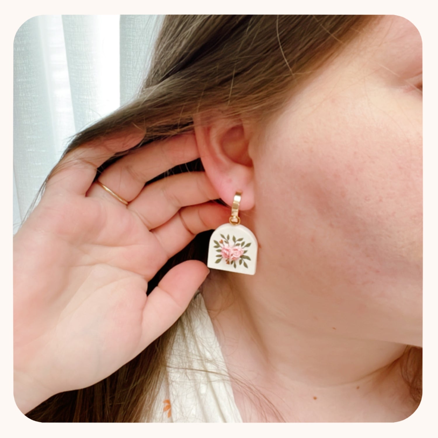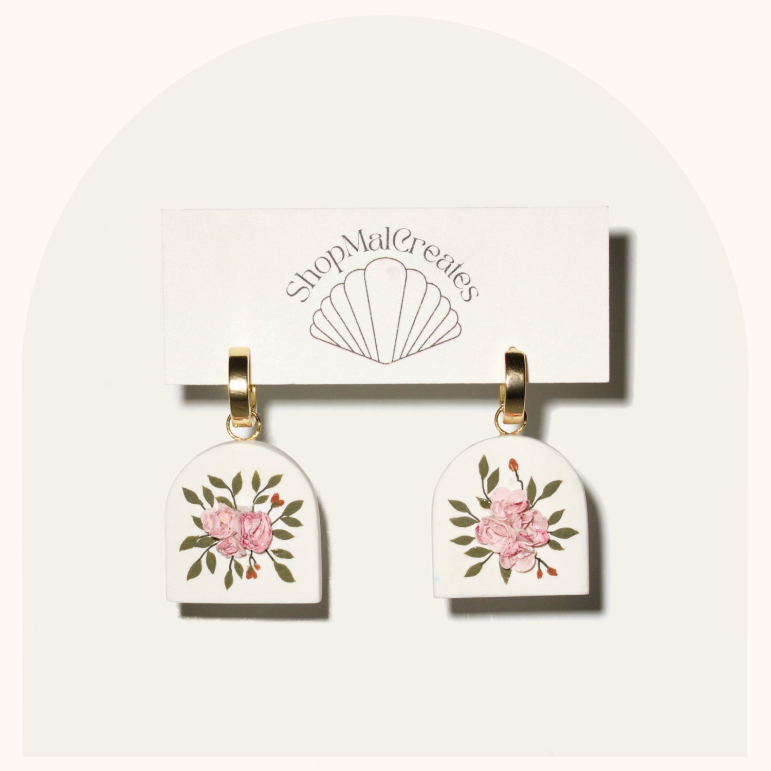 - These earrings are 100% polymer clay. I take special measures to ensure the petals and leaves stay where they're meant to be. I do recommend storing them in a safe place and treating them as you would treat any delicate, handmade jewelry!