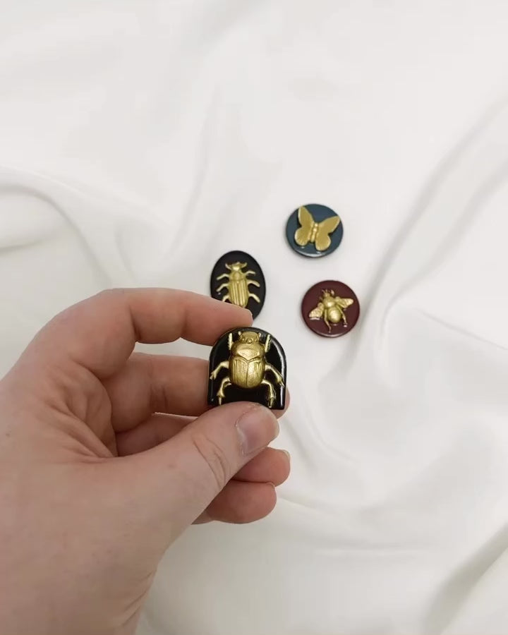 This set features little brass bugs and it's adorable. A beetle, bee, junebug, and butterfly! The cutest of cute.