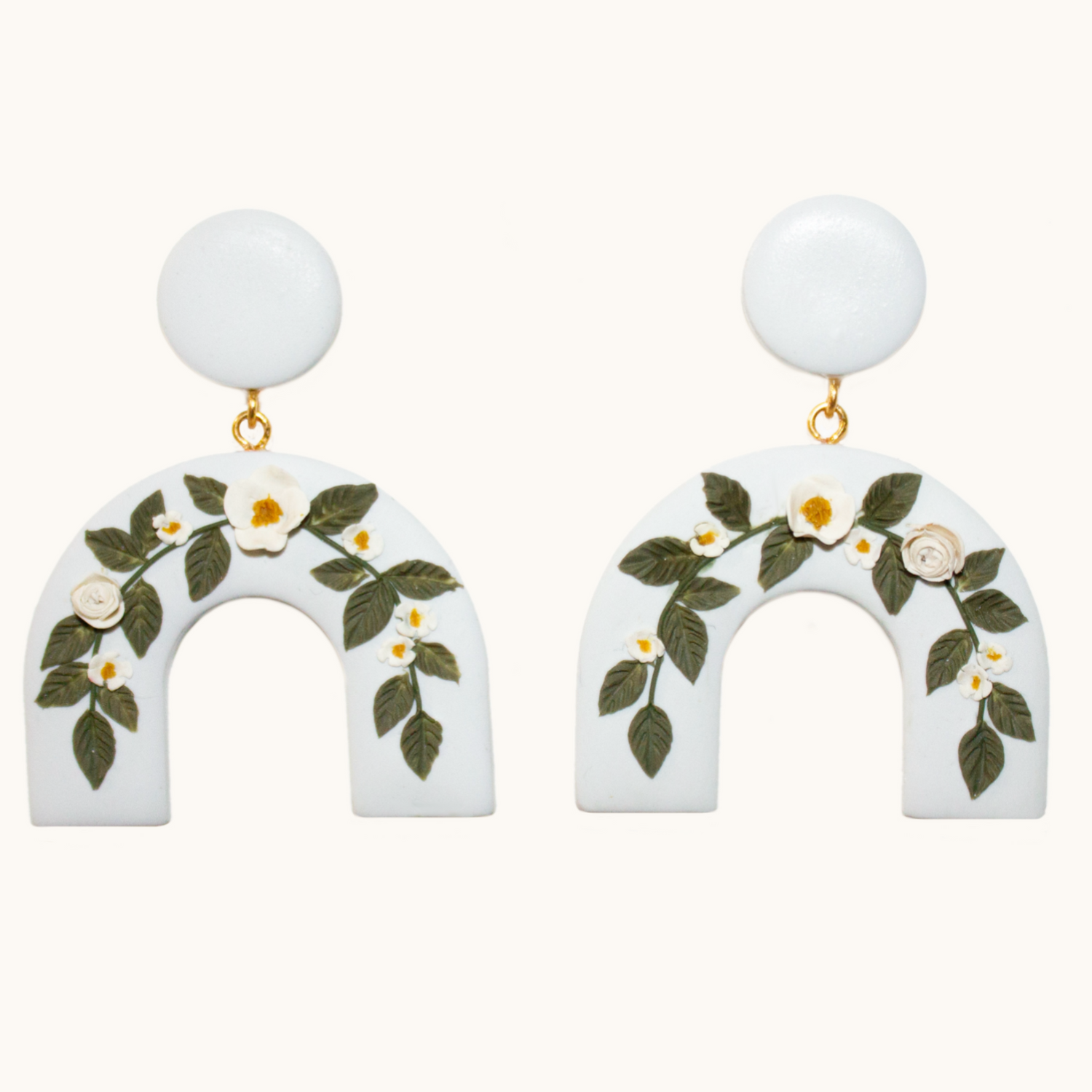Materials: Polymer clay, resin, gold filled wire, gold filled hook earring posts