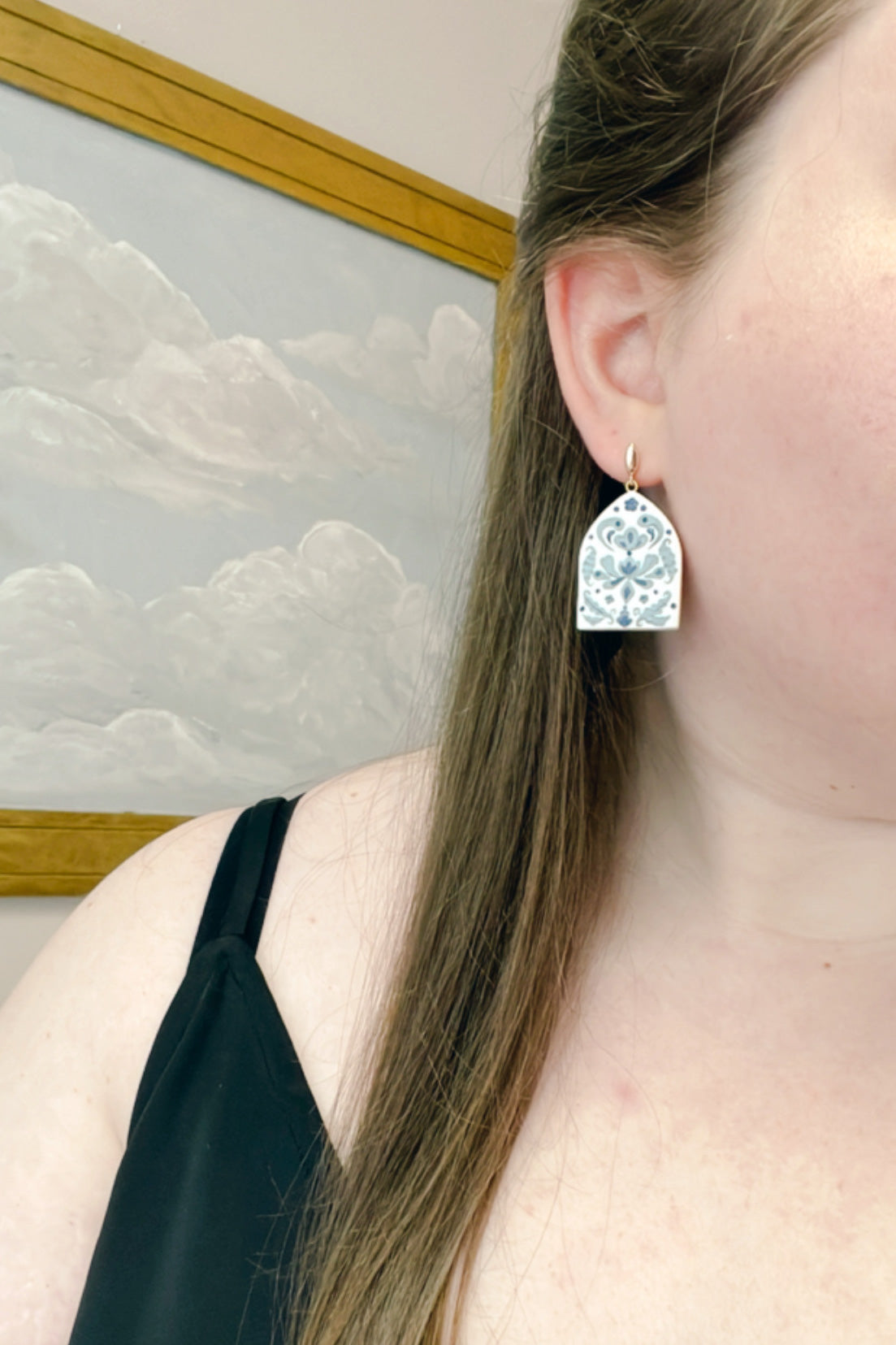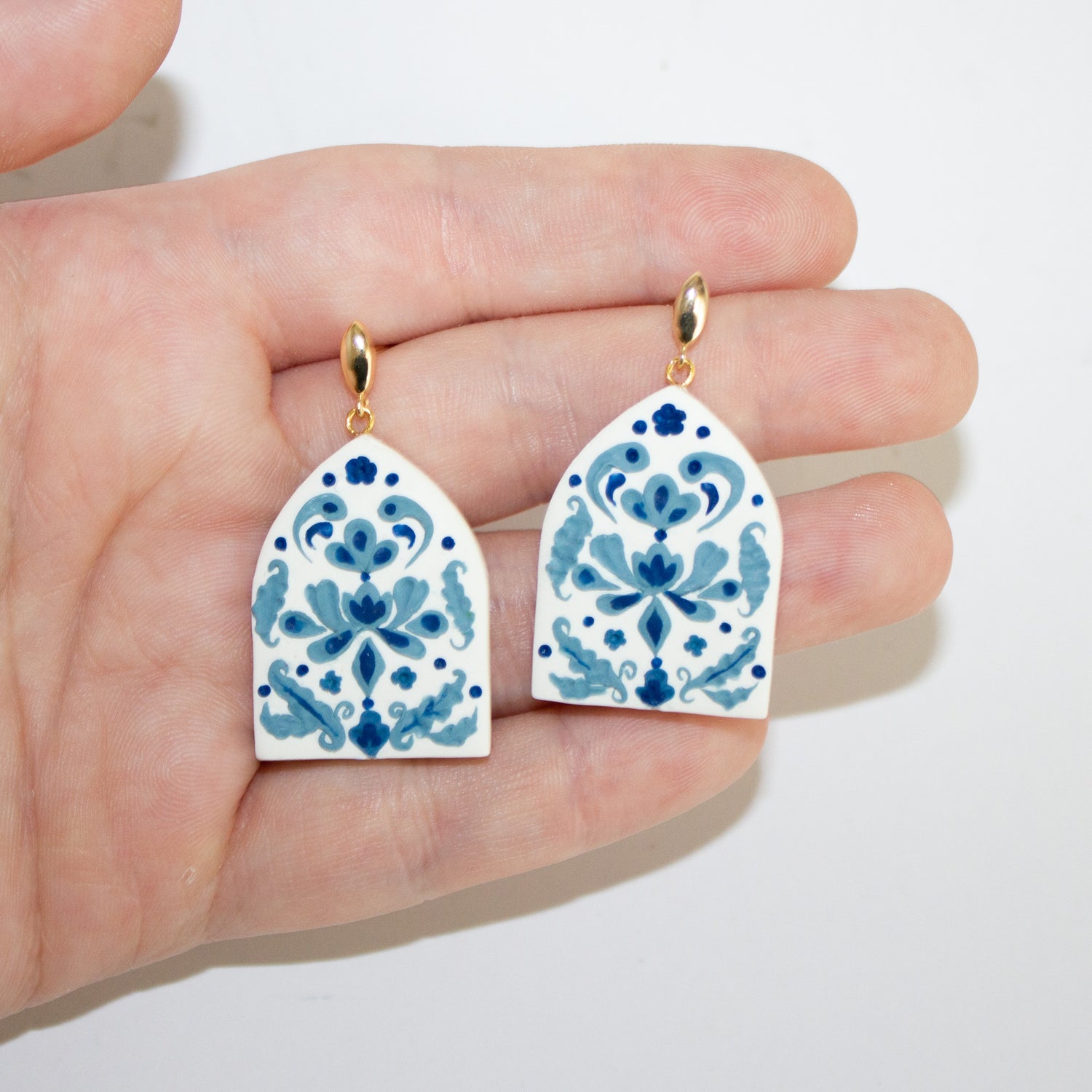 These earrings are inspired by the blue willow patterned fine china. They're highly detailed and take so long to get just right. It's all worth it though, i'm so in love with them!