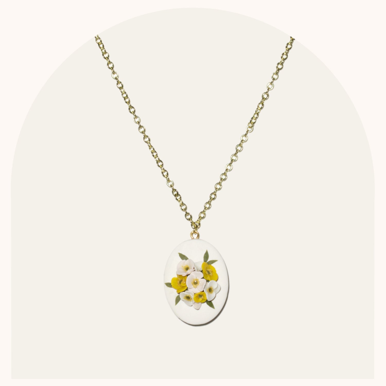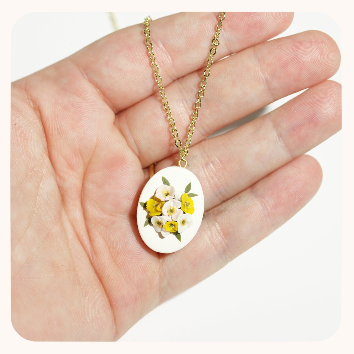 - These necklaces are 100% polymer clay. I take special measures to ensure the petals and leaves stay where they're meant to be. I do recommend storing them in a safe place and treating them as you would treat any delicate, handmade jewelry!