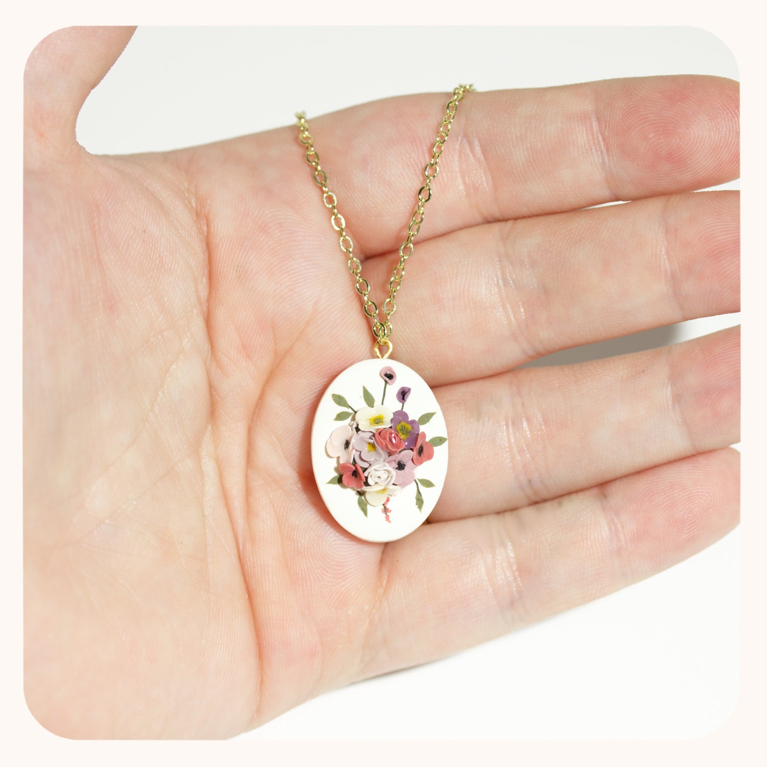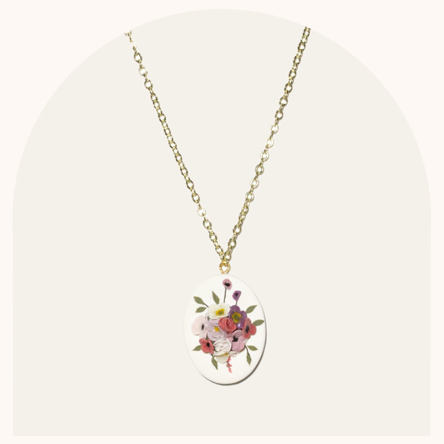- These necklaces are 100% polymer clay. I take special measures to ensure the petals and leaves stay where they're meant to be. I do recommend storing them in a safe place and treating them as you would treat any delicate, handmade jewelry!