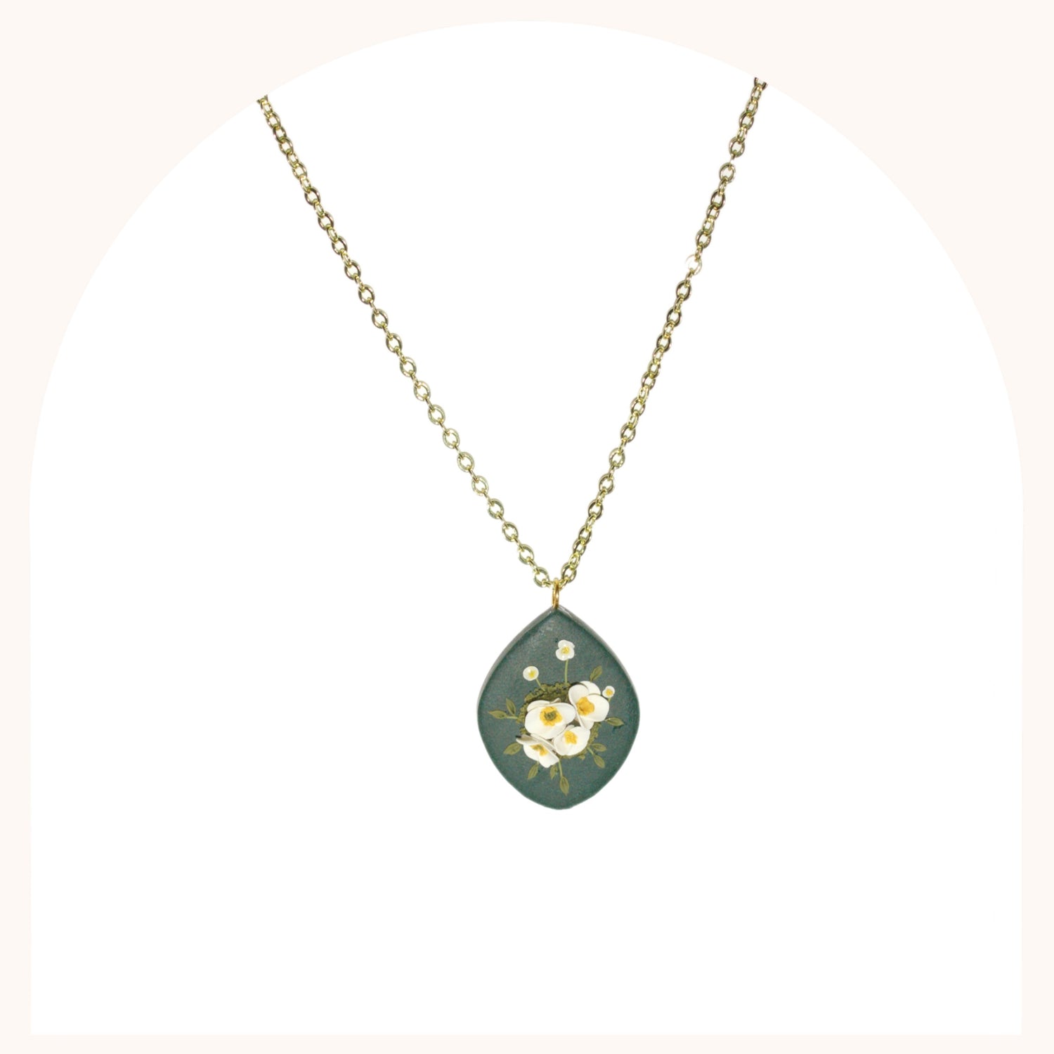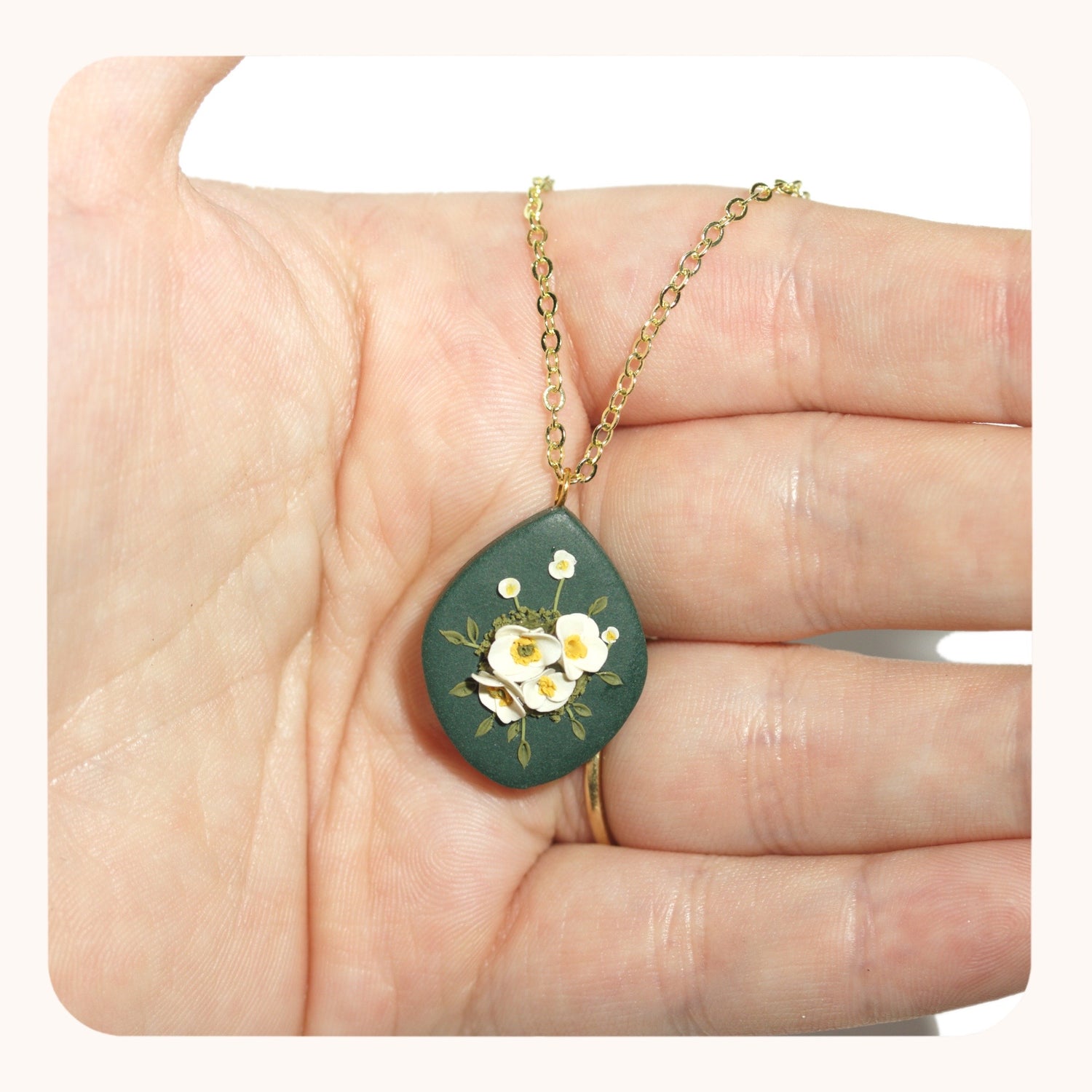 - These necklaces are 100% polymer clay. I take special measures to ensure the petals and leaves stay where they're meant to be. I do recommend storing them in a safe place and treating them as you would treat any delicate, handmade jewelry!
