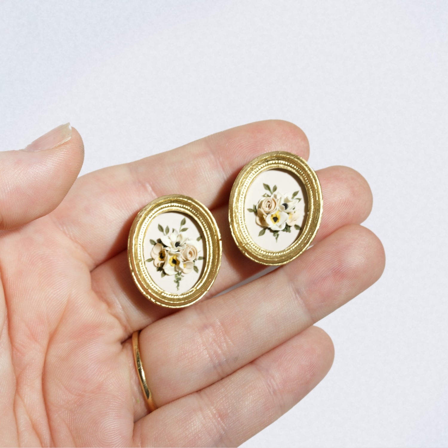 - Earrings are made of polymer clay and resin, sealed with a clear coat to make them long-lasting