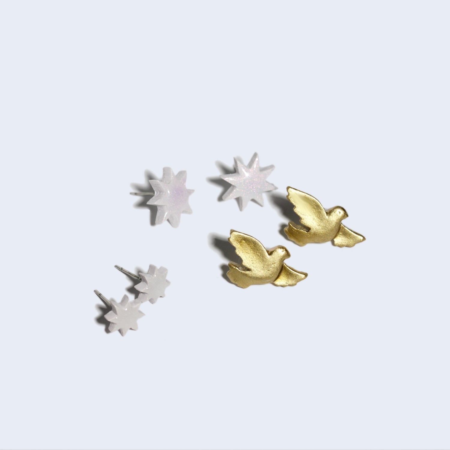 A stud set is so necessary in every collection. I really wanted to tie together the night sky and a beautiful clear blue sky. Opposites attract, right? Stars and soaring birds are two of my favorite motifs in jewelry.