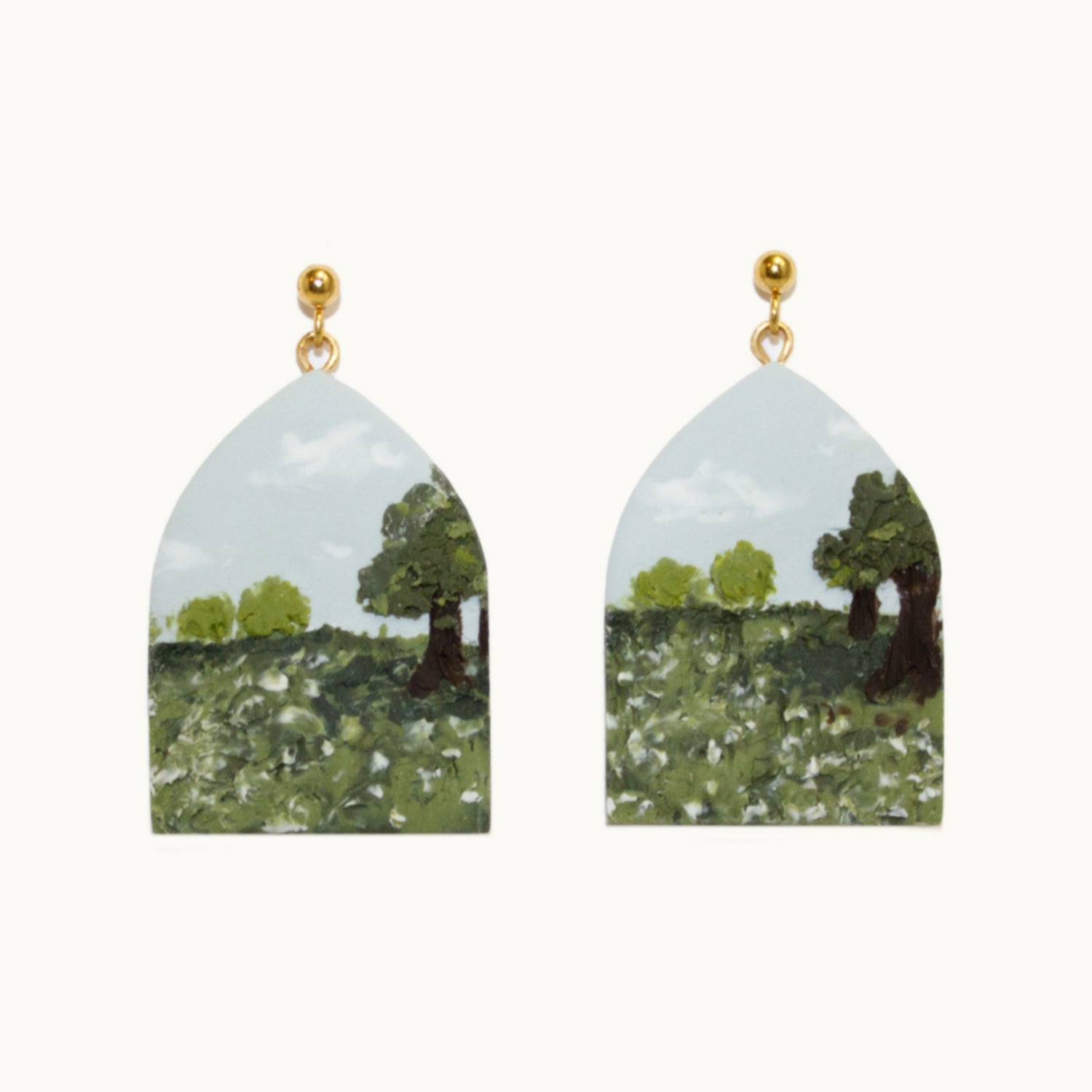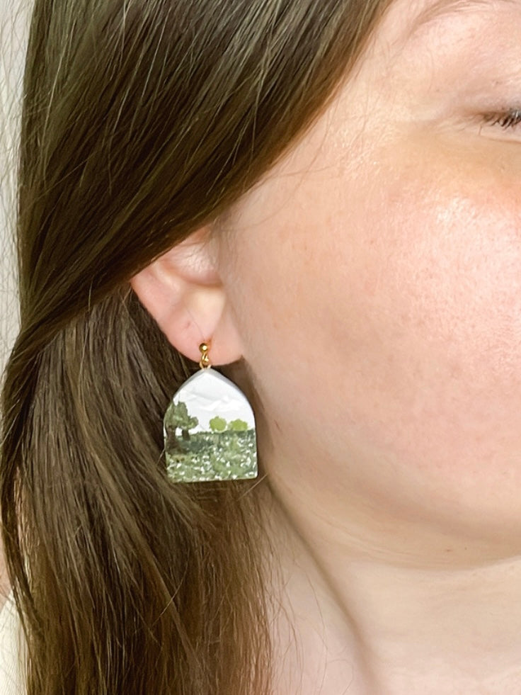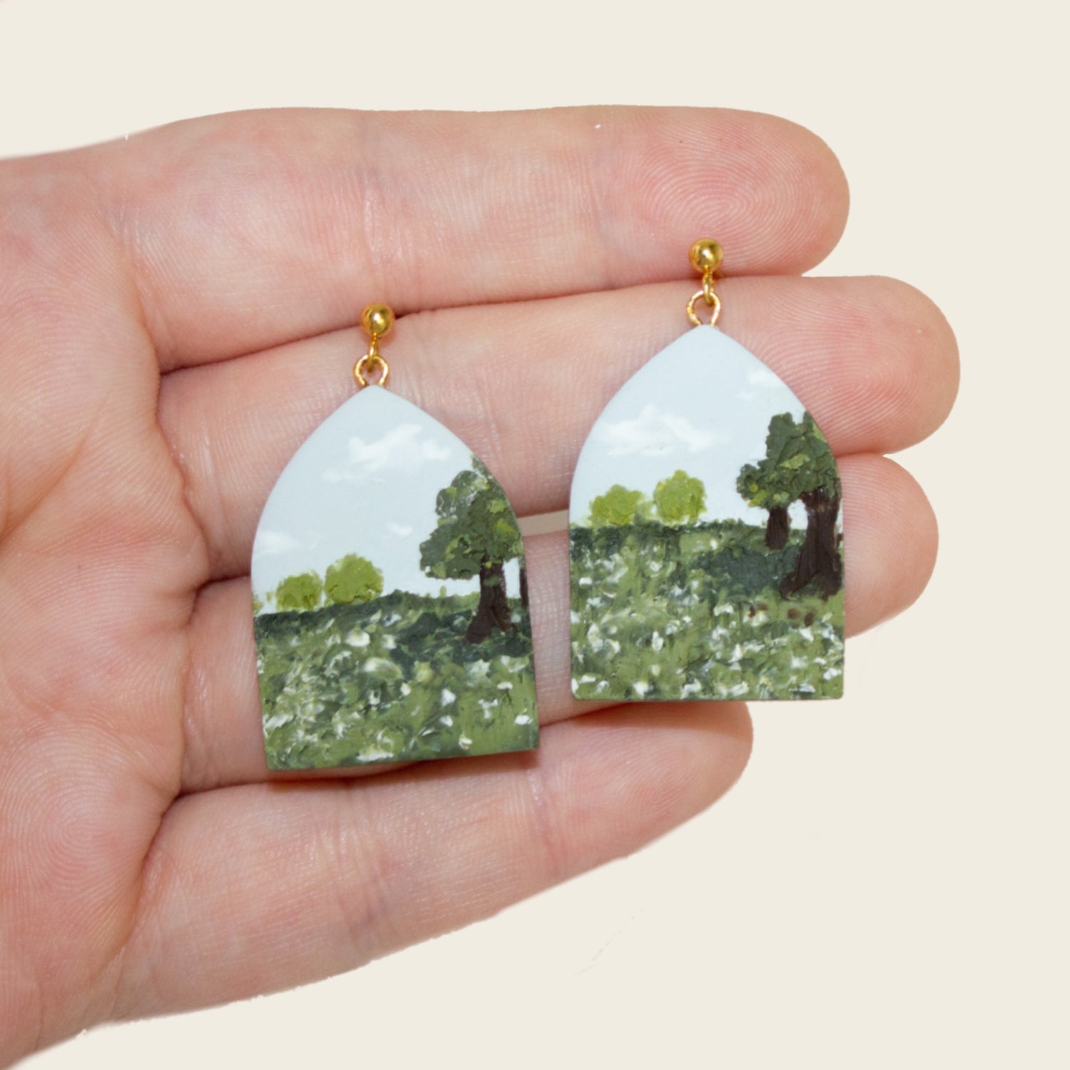 These earrings are a really cute polymer clay version of a flowery meadow! They're so romantic and even a little cottage-core? Did I use that term right?