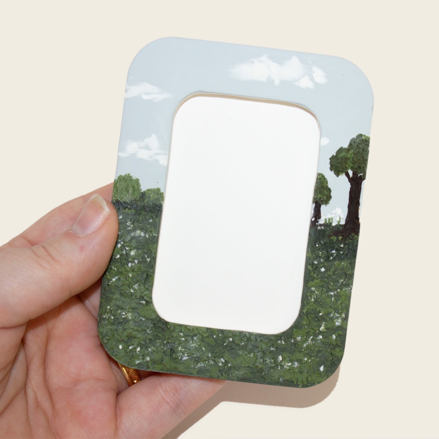 This frame is a really cute polymer clay version of a flowery meadow! Pop your cutest pics in it and place it on a shelf or hang it on the wall.