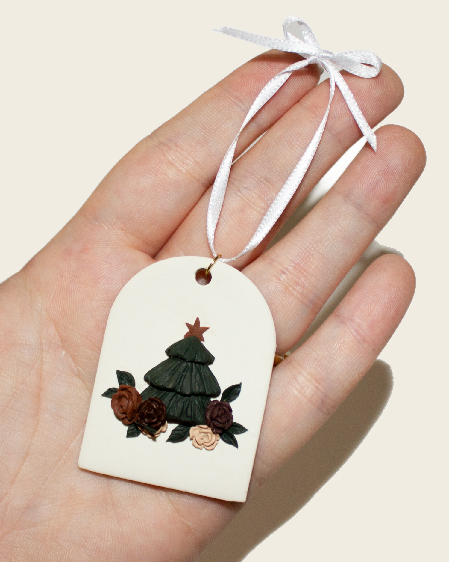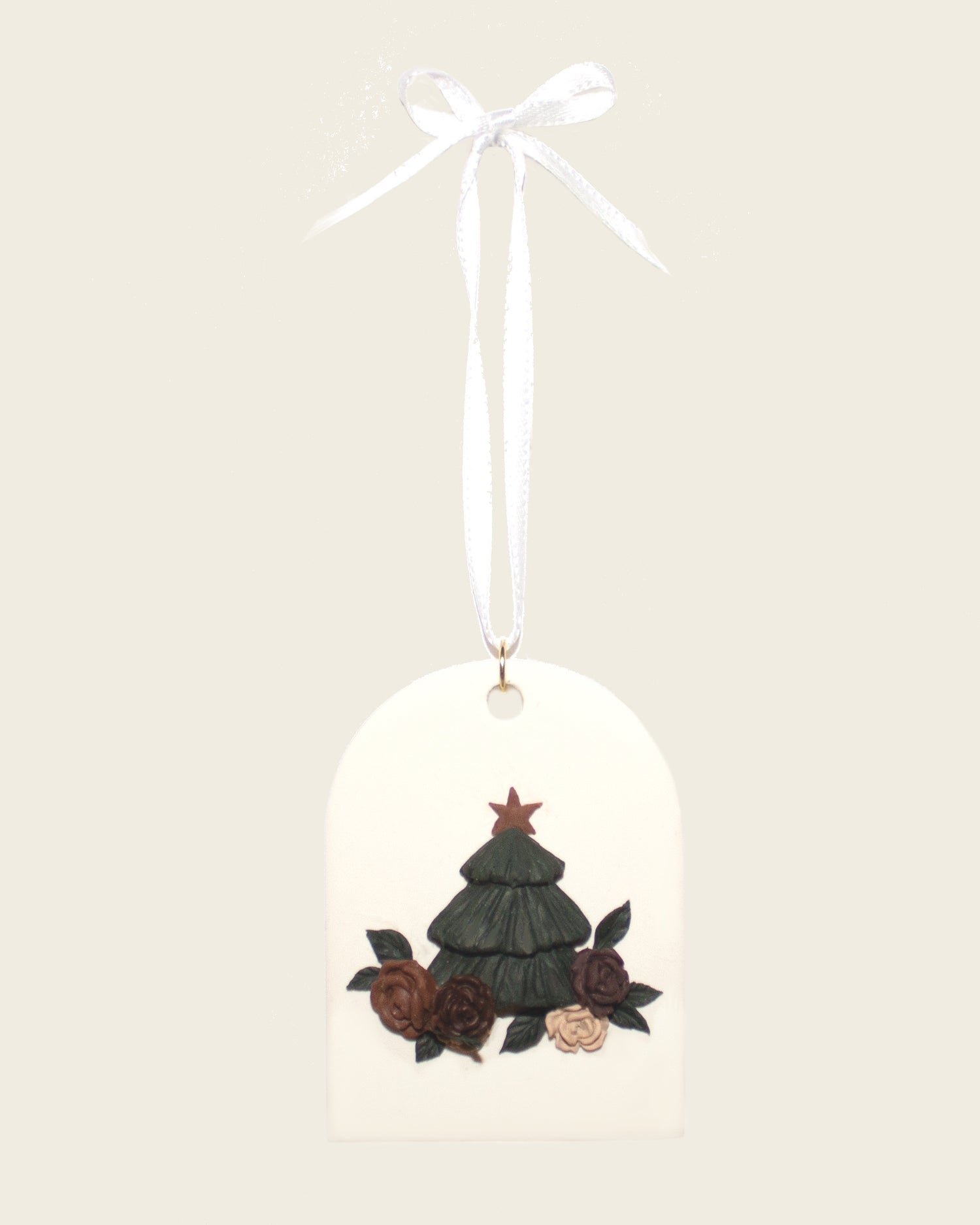 Here's our yearly ornament! I decided to only do two because I need to keep it simple this year. So I went with an adorable floral tree scene!
