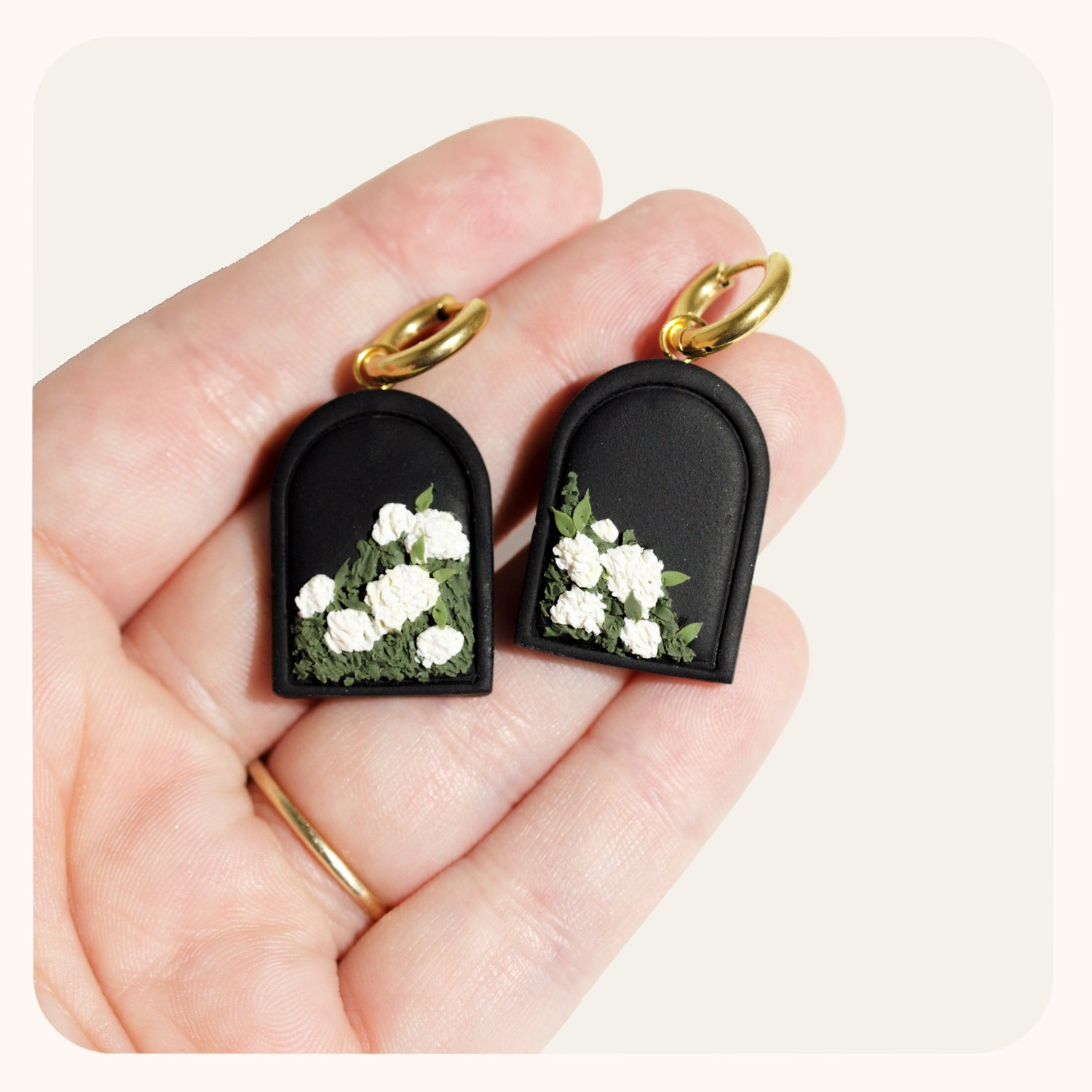 - These earrings are 100% polymer clay. I take special measures to ensure the petals and leaves stay where they're meant to be. I do recommend storing them in a safe place and treating them as you would treat any delicate, handmade jewelry!