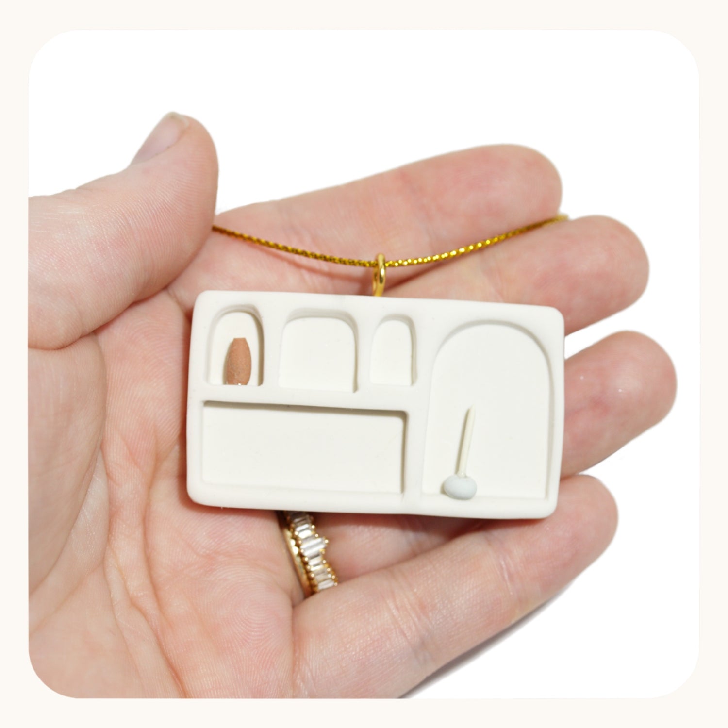 This cutie is inspired by the mega-popular designer book shelf and each one has one of a kind, hand crafted decorations on the little shelves. Tiny candle sticks, books, vases and more!