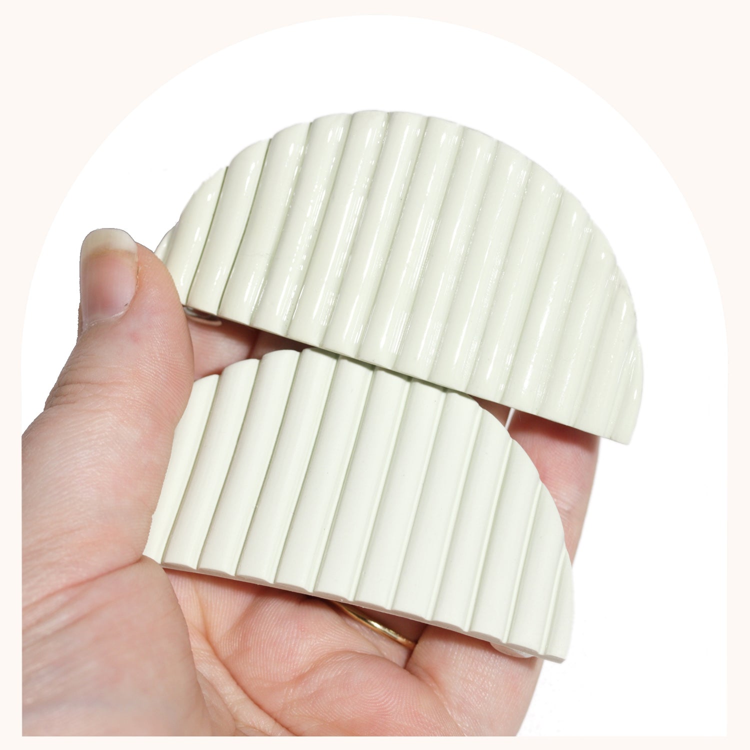 The quilted texture makes these barrettes feel luxurious and modern, and I purposefully chose colors like mint, pine, and periwinkle to add a playful quality. To me, the mint is effortless and easy to match with anything you wear.