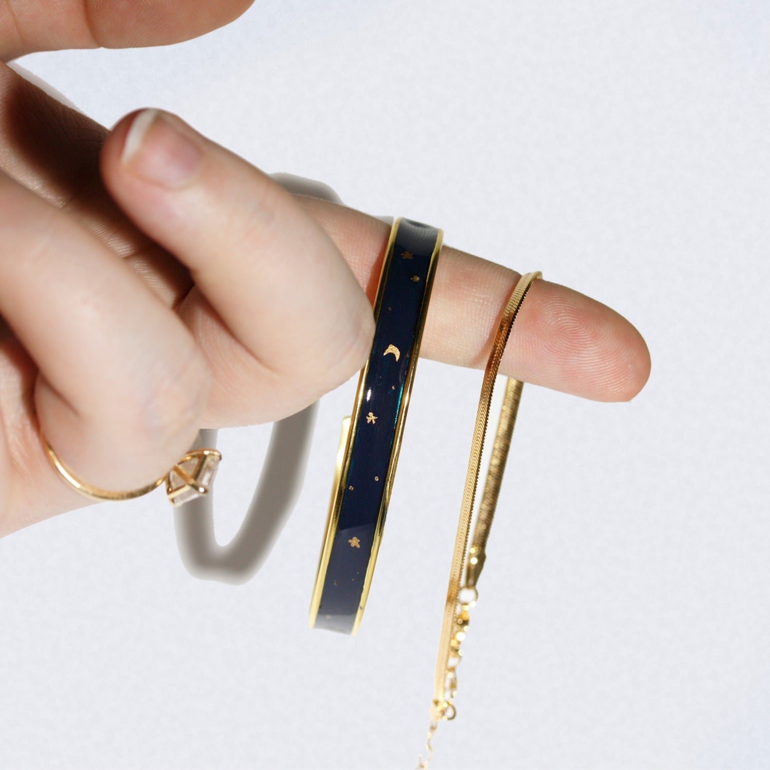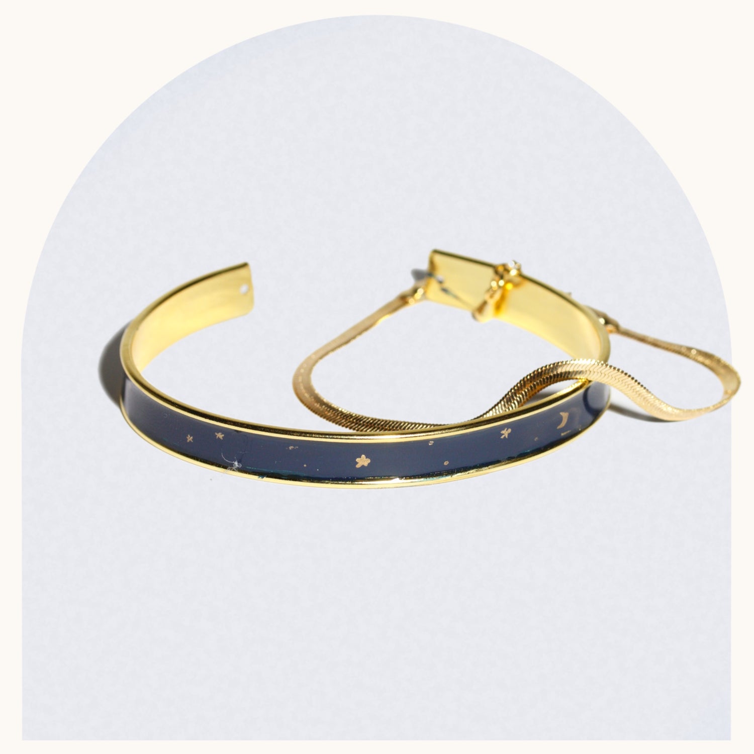 I've been playing around with stacking accessories. Which is why this bracelet has the option of coming with a beautiful herringbone chain that accents the bangle just perfectly!