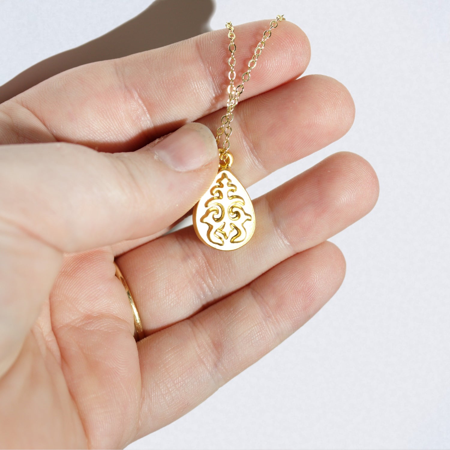 The gold setting itself has a nice design embossed on the back of the pendant, so no matter which way the necklace faces, it's a beautiful accessory.