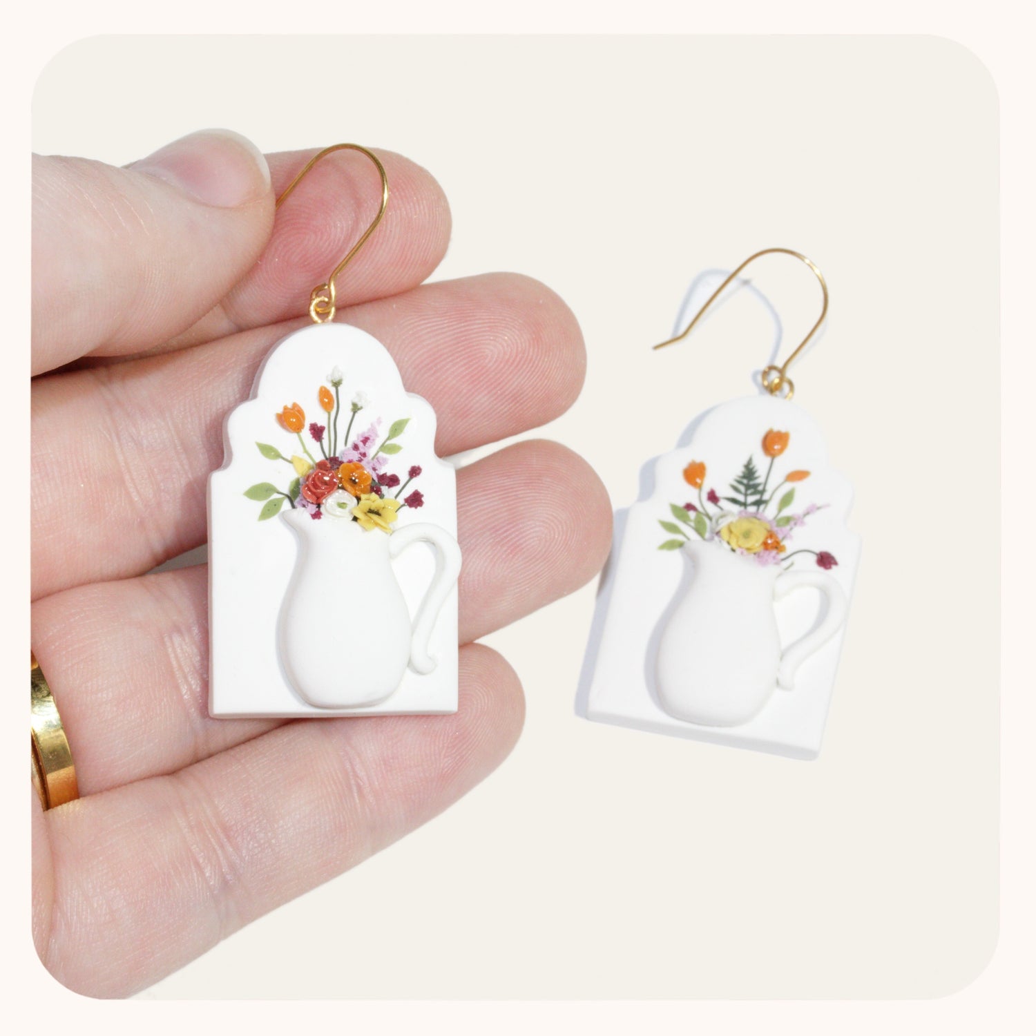 - These earrings are 100% polymer clay. I take special measures to ensure the petals and leaves stay where they're meant to be. I do recommend storing them in a safe place and treating them as you would treat any delicate, handmade jewelry!