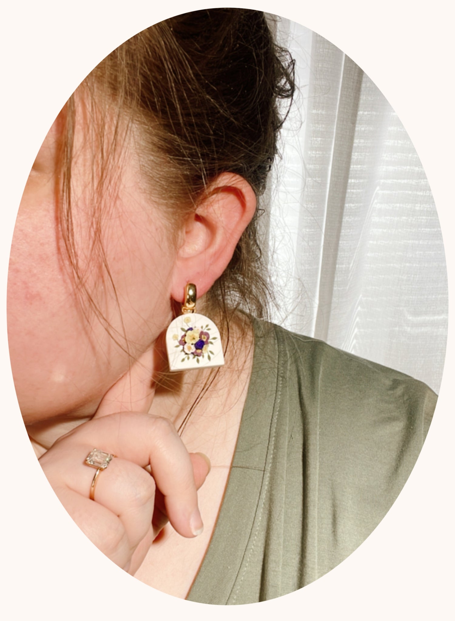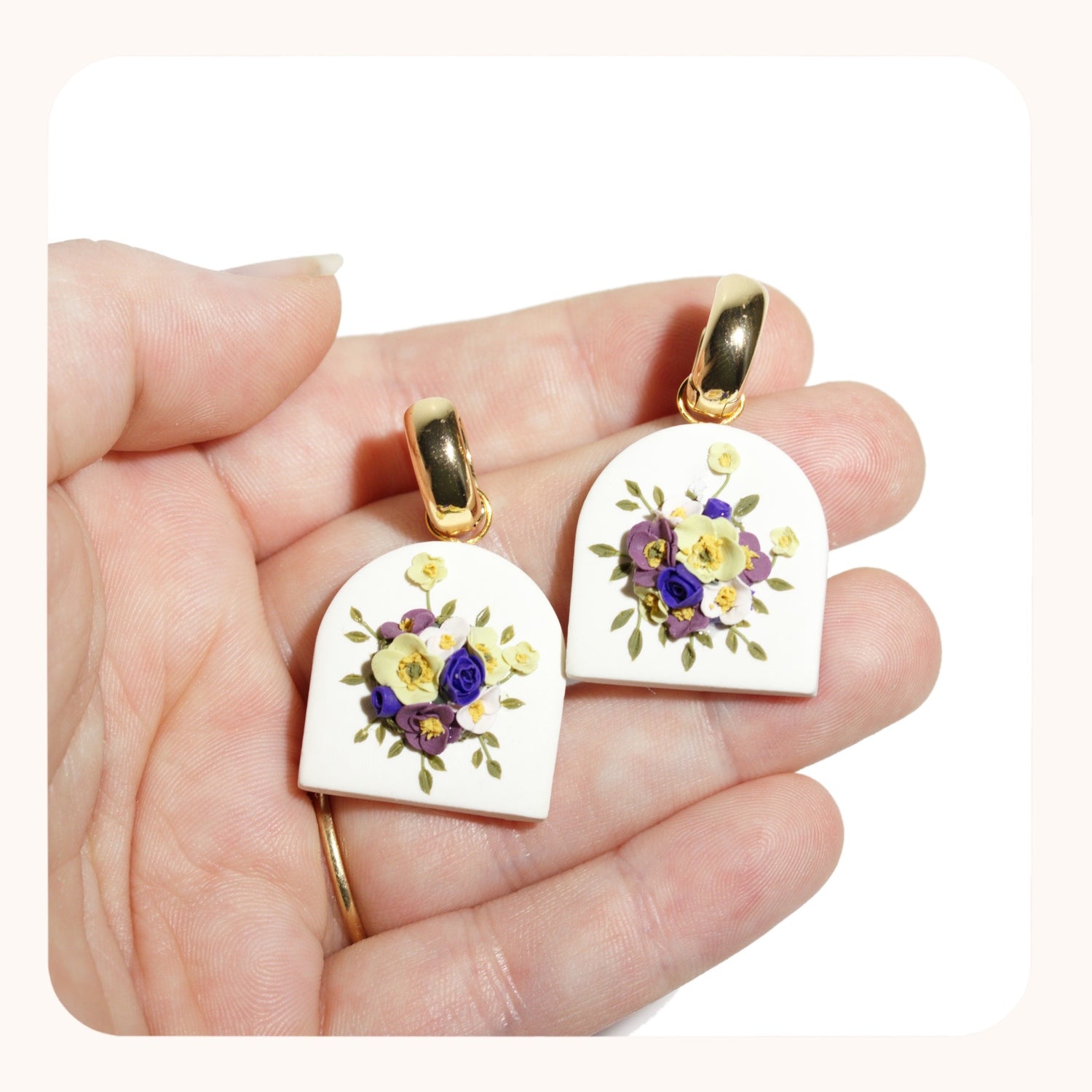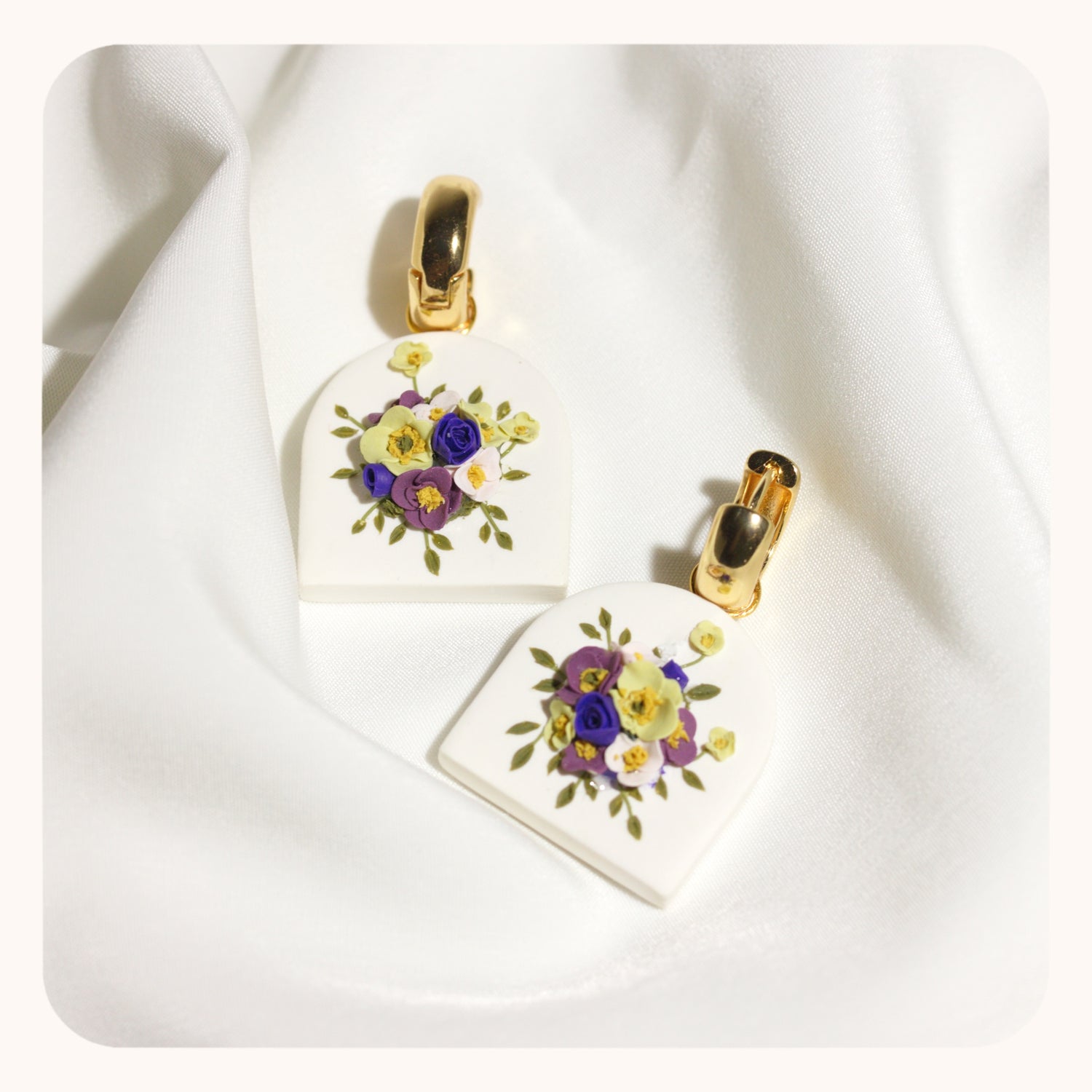 - These earrings are 100% polymer clay. I take special measures to ensure the petals and leaves stay where they're meant to be. I do recommend storing them in a safe place and treating them as you would treat any delicate, handmade jewelry!