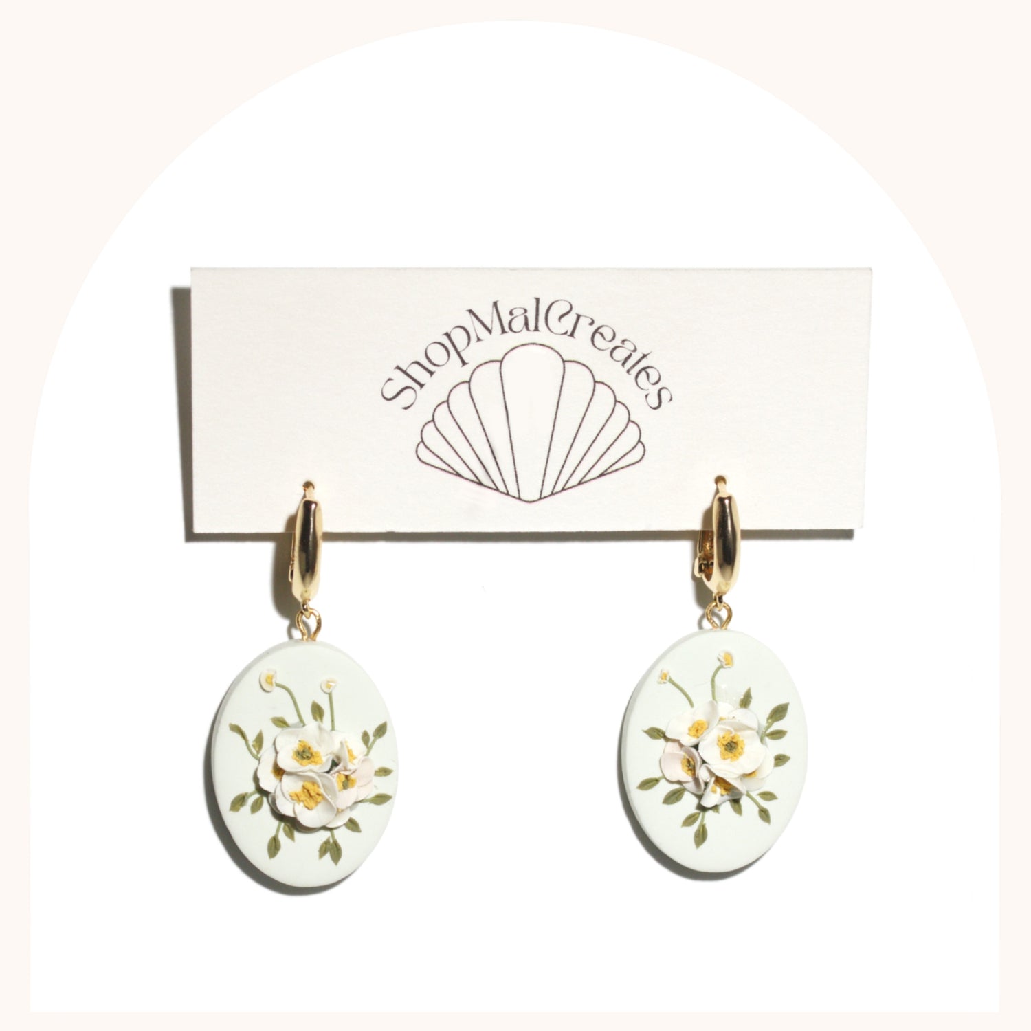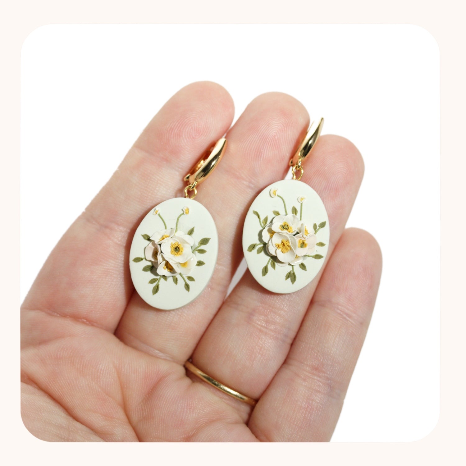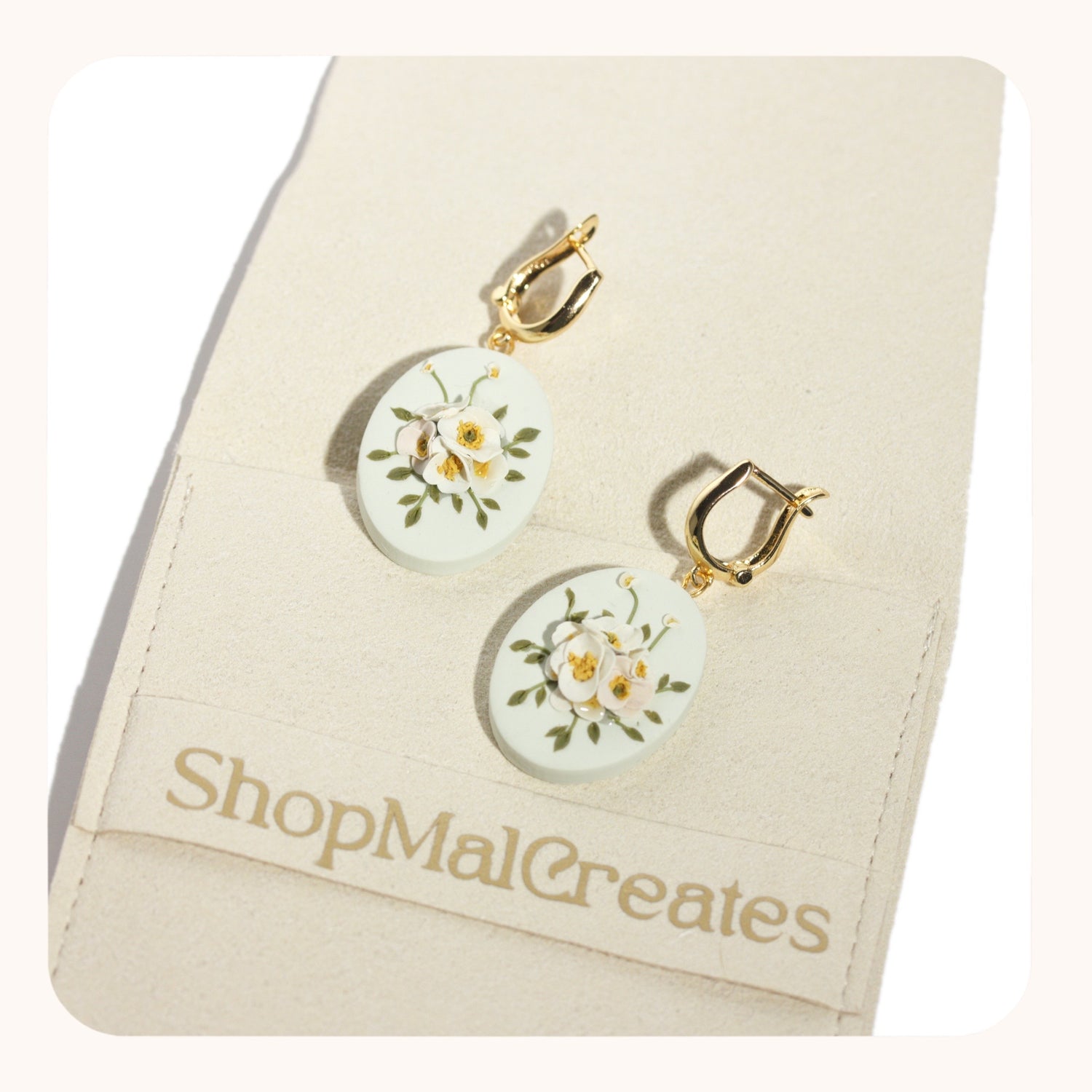 - These earrings are 100% polymer clay. I take special measures to ensure the petals and leaves stay where they're meant to be. I do recommend storing them in a safe place and treating them as you would treat any delicate, handmade jewelry!