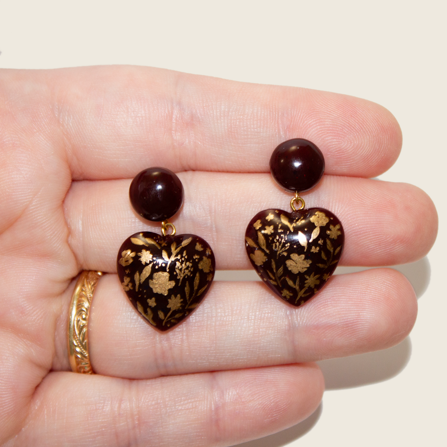 Materials: Resin, gold filled wire, titanium earring posts, gold paint