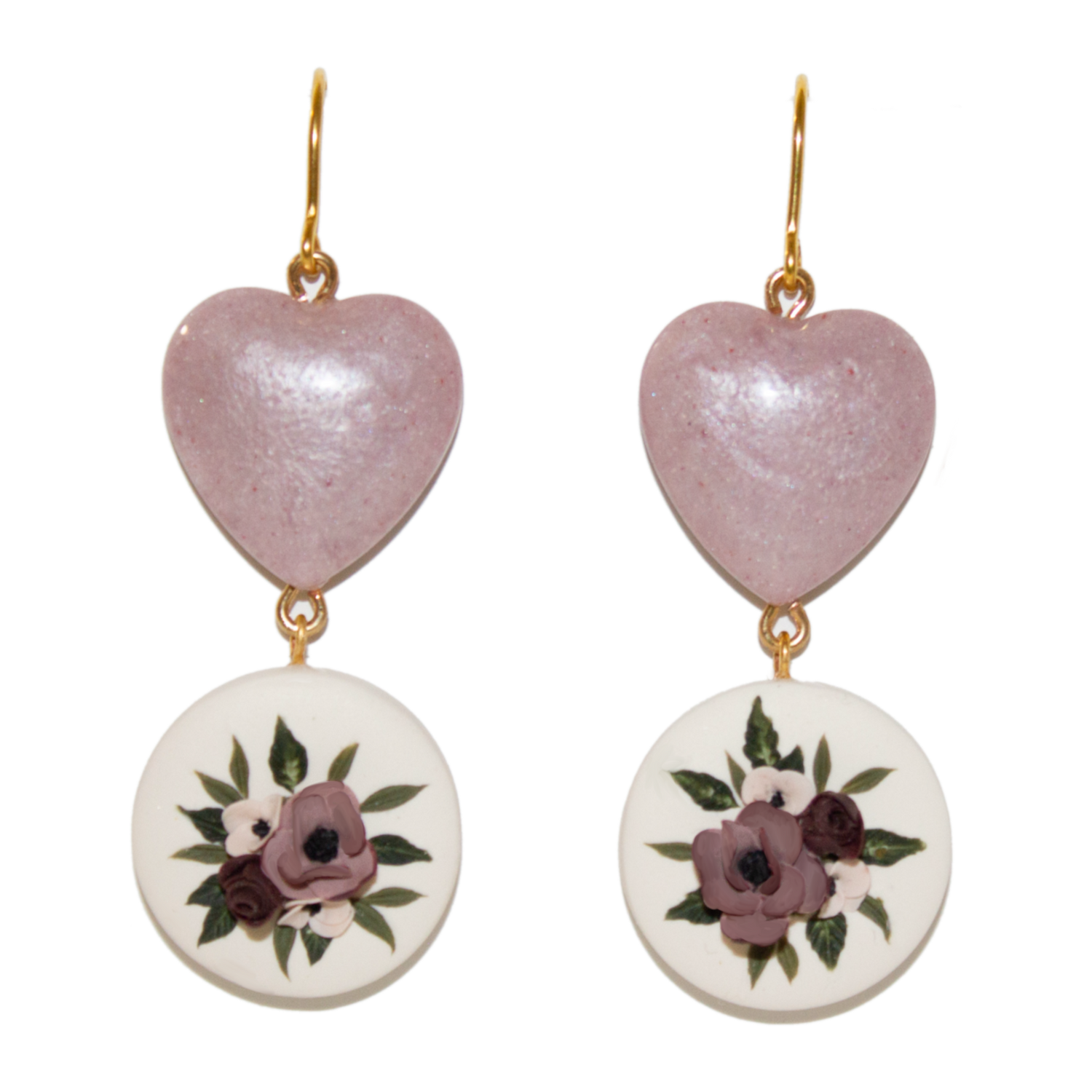 Materials: Polymer clay, resin, gold filled wire, gold filled hook earring posts