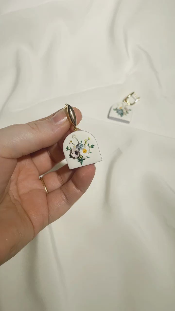 - Earrings are made of polymer clay and resin, sealed with a clear coat to make them long-lasting