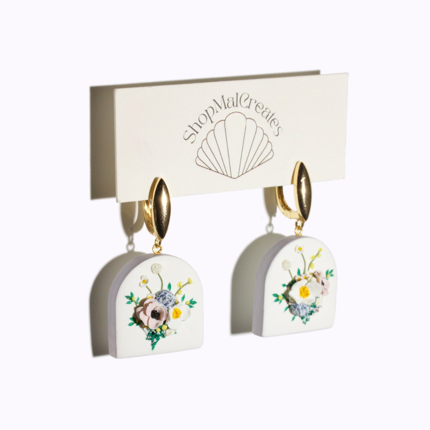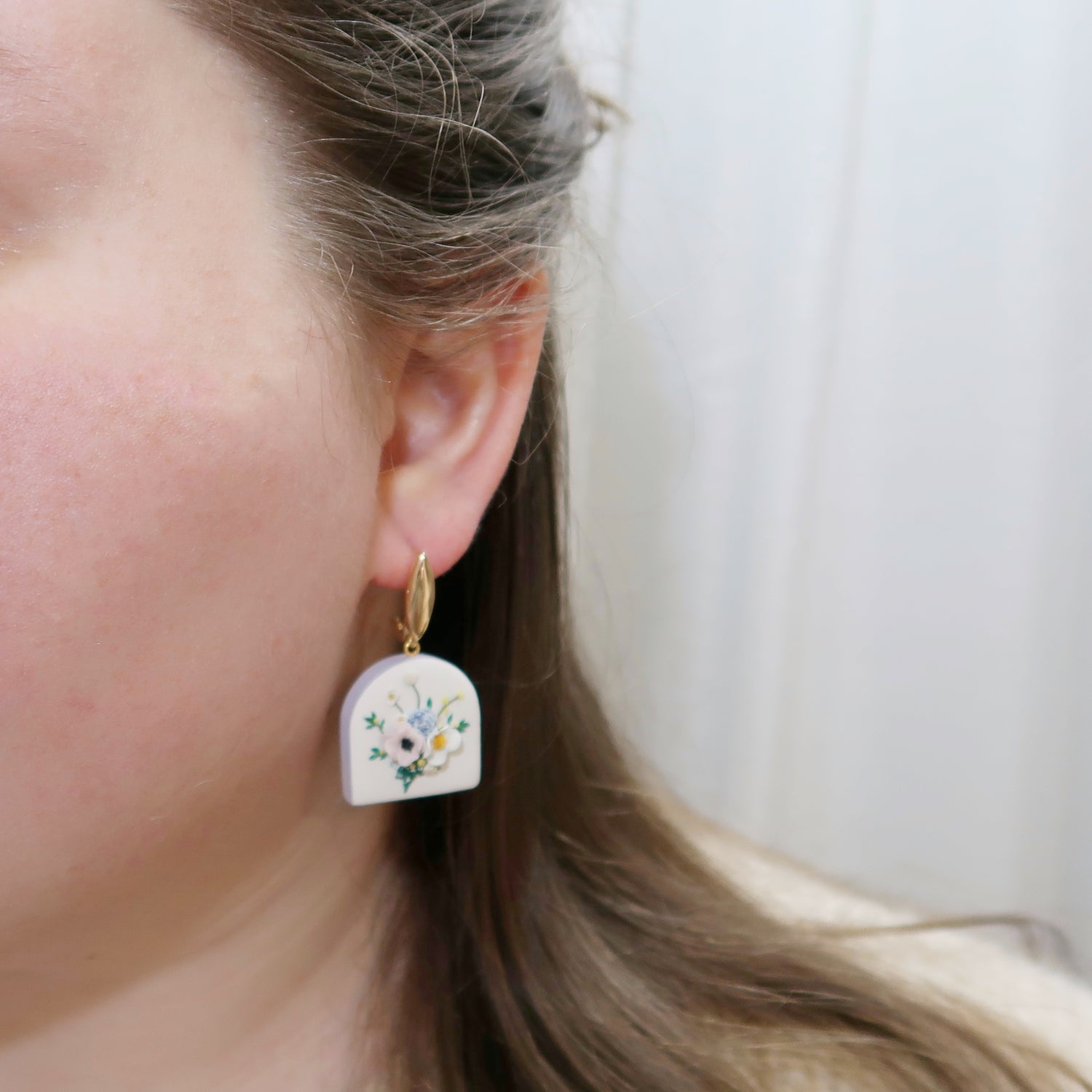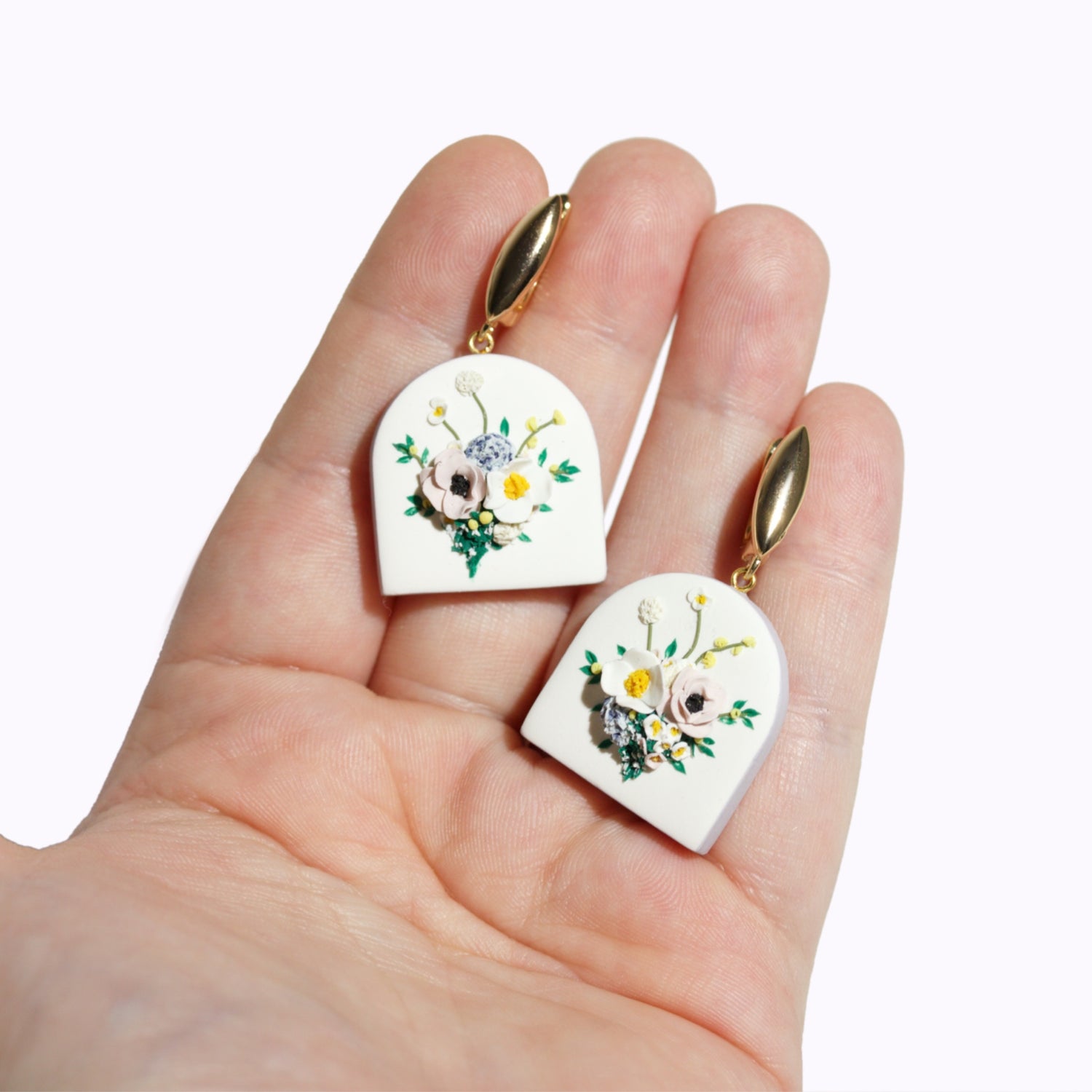 These earrings are so reminiscent for my classic floral work! I just wanted to add something special to help them stand out a little, so I painted the edges a beautiful dusty lilac color that matches the bouquet perfectly.