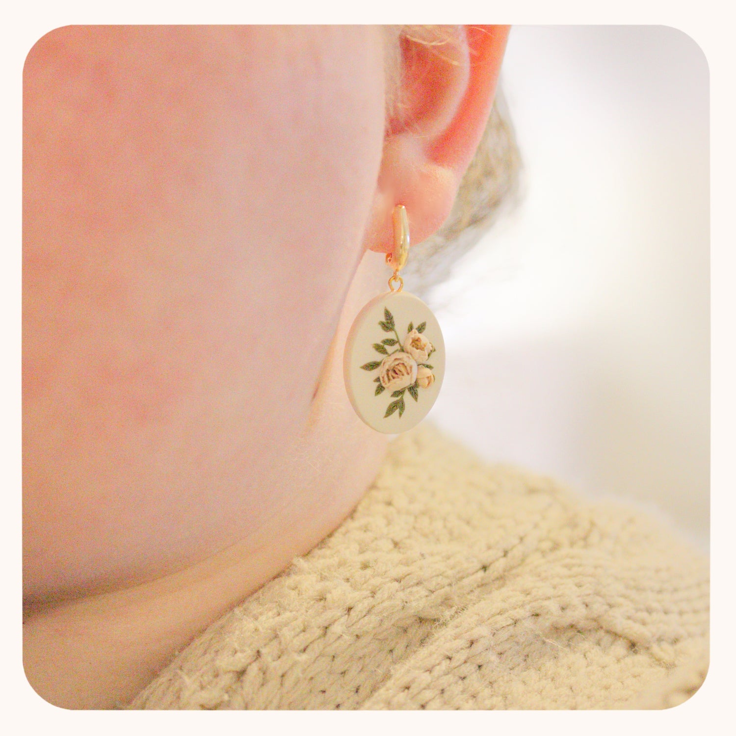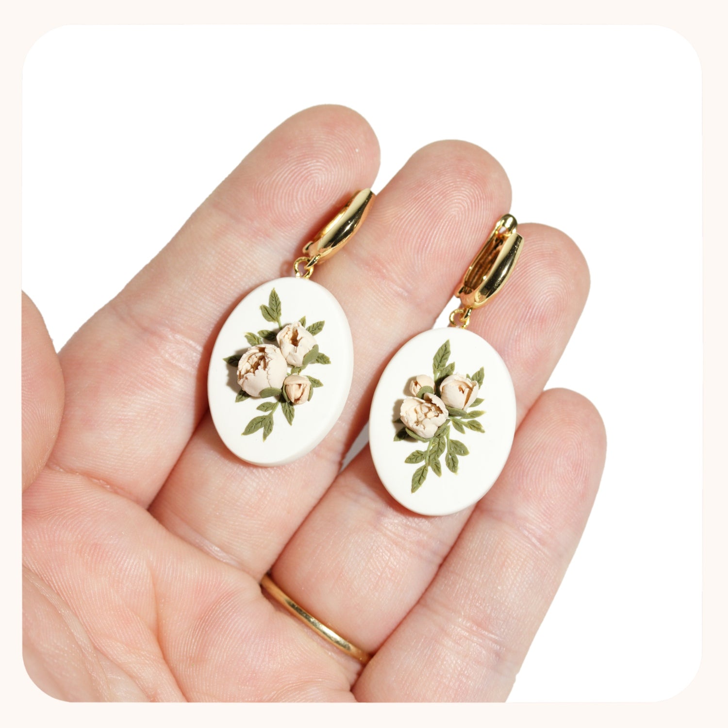 - These earrings are 100% polymer clay. I take special measures to ensure the petals and leaves stay where they're meant to be. I do recommend storing them in a safe place and treating them as you would treat any delicate, handmade jewelry!