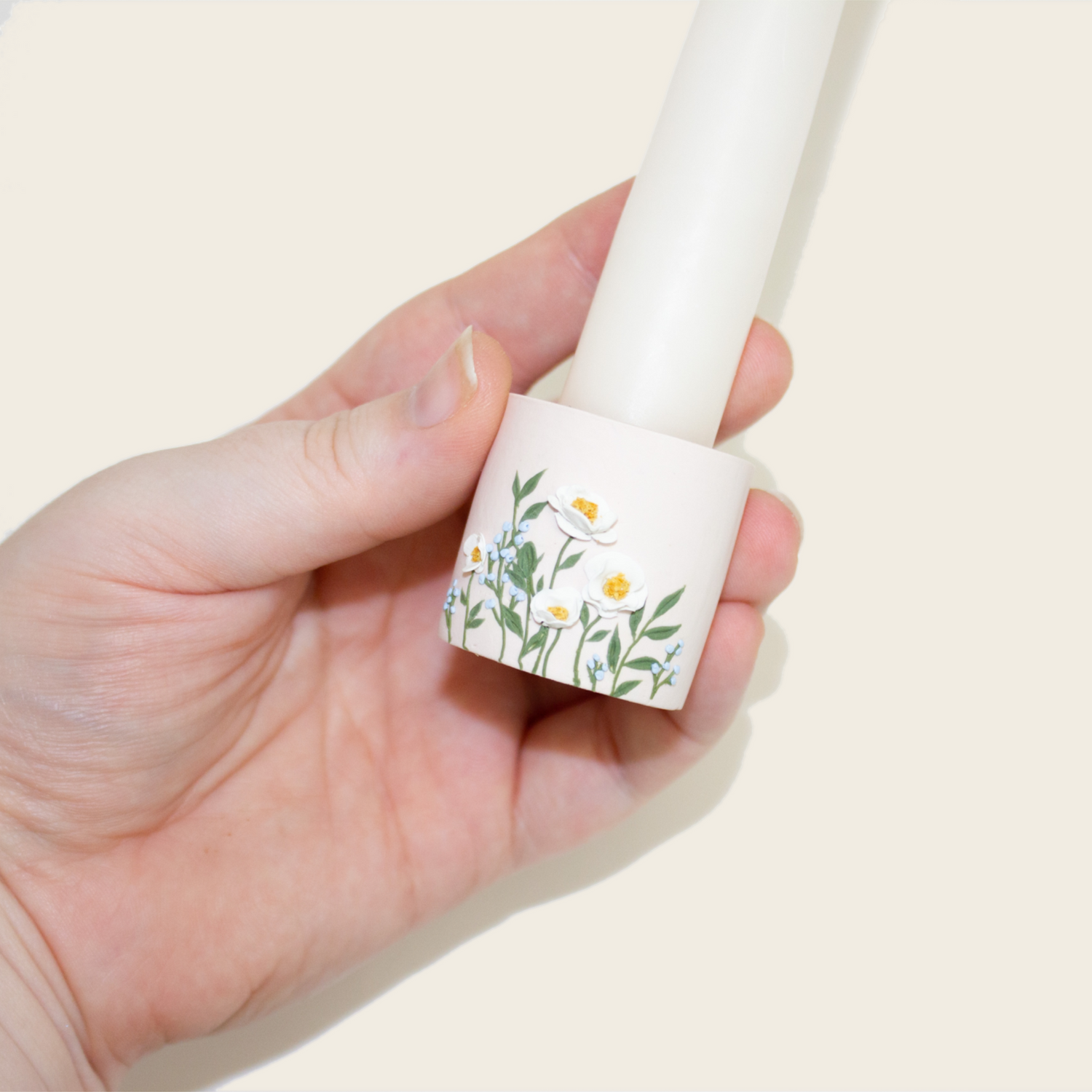 - package includes hand sculpted candle holder and the candlestick pictured.