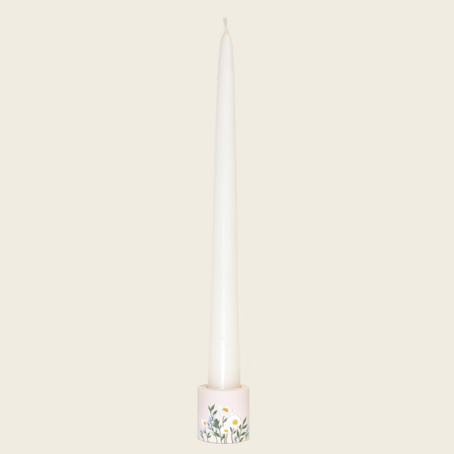 This candlestick set includes the handmade candle holder + the candlestick in the picture. I wanted to include the candle because I made the holder specifically with this one in mind! Obviously you can use most candlesticks with it, but I wanted you to have the specific one I paired with it.
