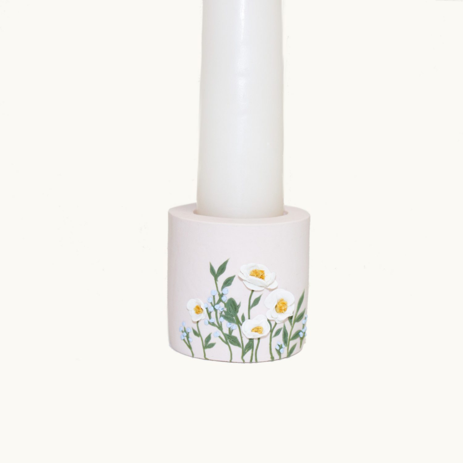This little cutie is a mauve/pale pink candlestick holder with white florals and little berries :)