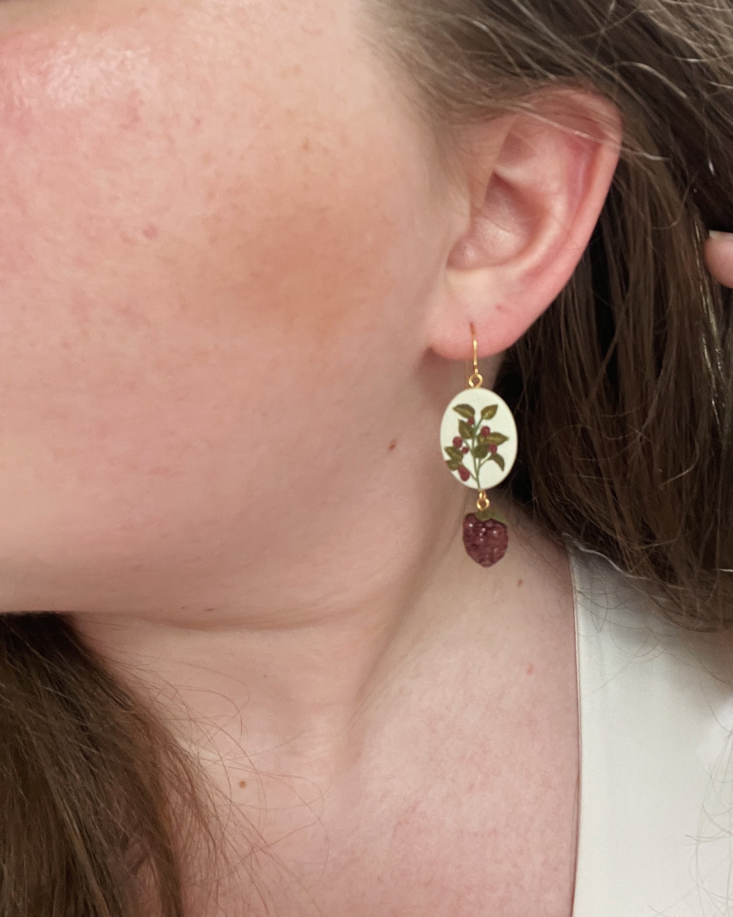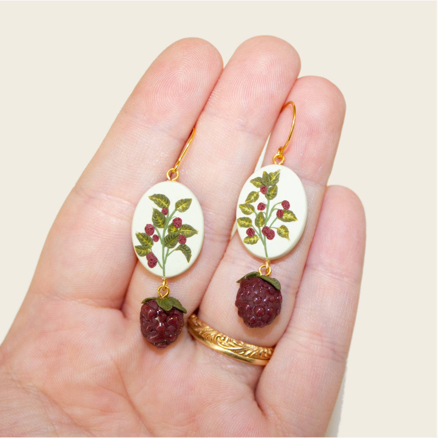 These cuties go perfectly with my sculpted bunny earrings, they're a little family :) I've just always wanted to make itty bitty raspberry beads, so here they are! God, they're so cute.