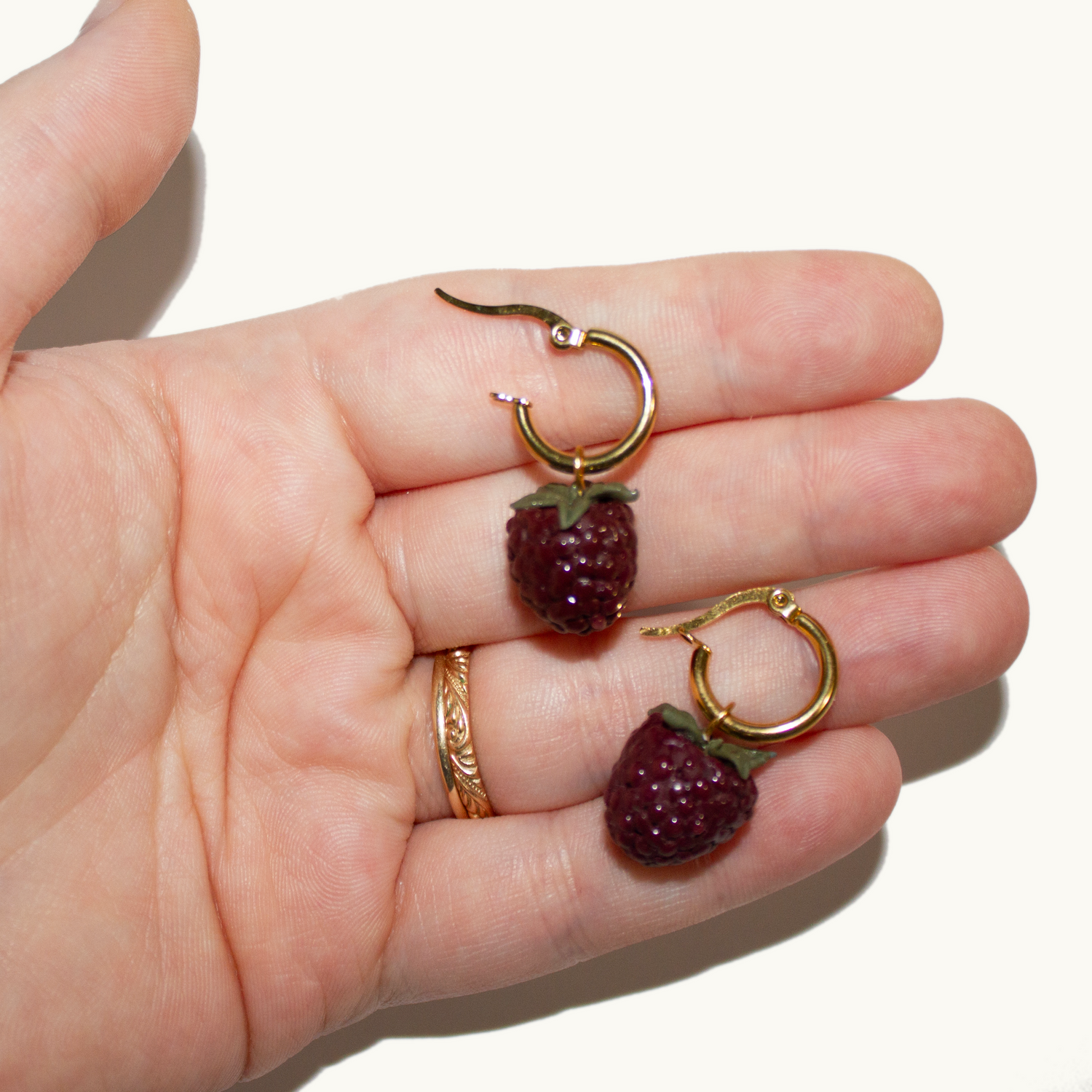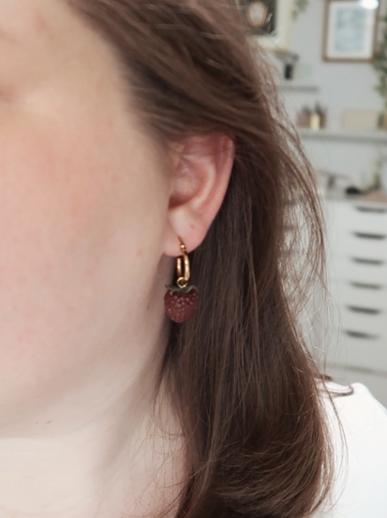 What outfit could be complete without little raspberry bead earrings?? That's a serious question, I really want to know. These are a labor of love, but so so worth it! They're adorable and as realistic as I could make them :)