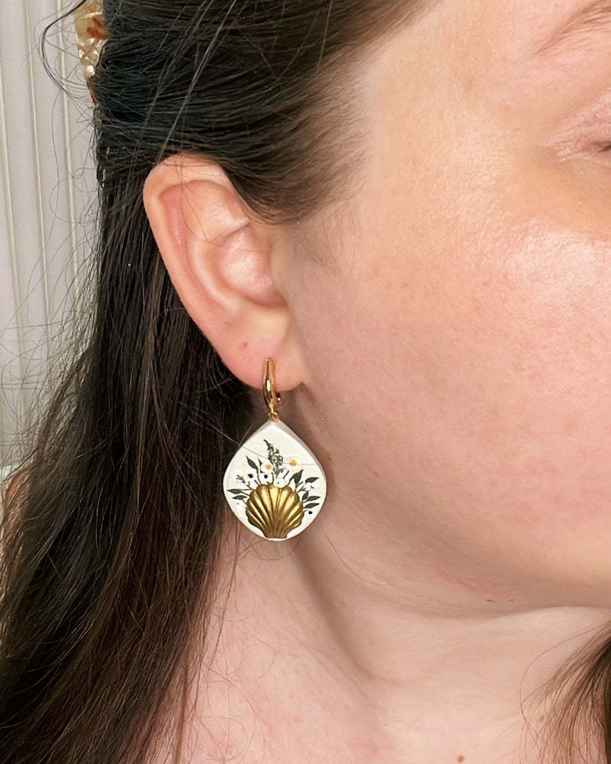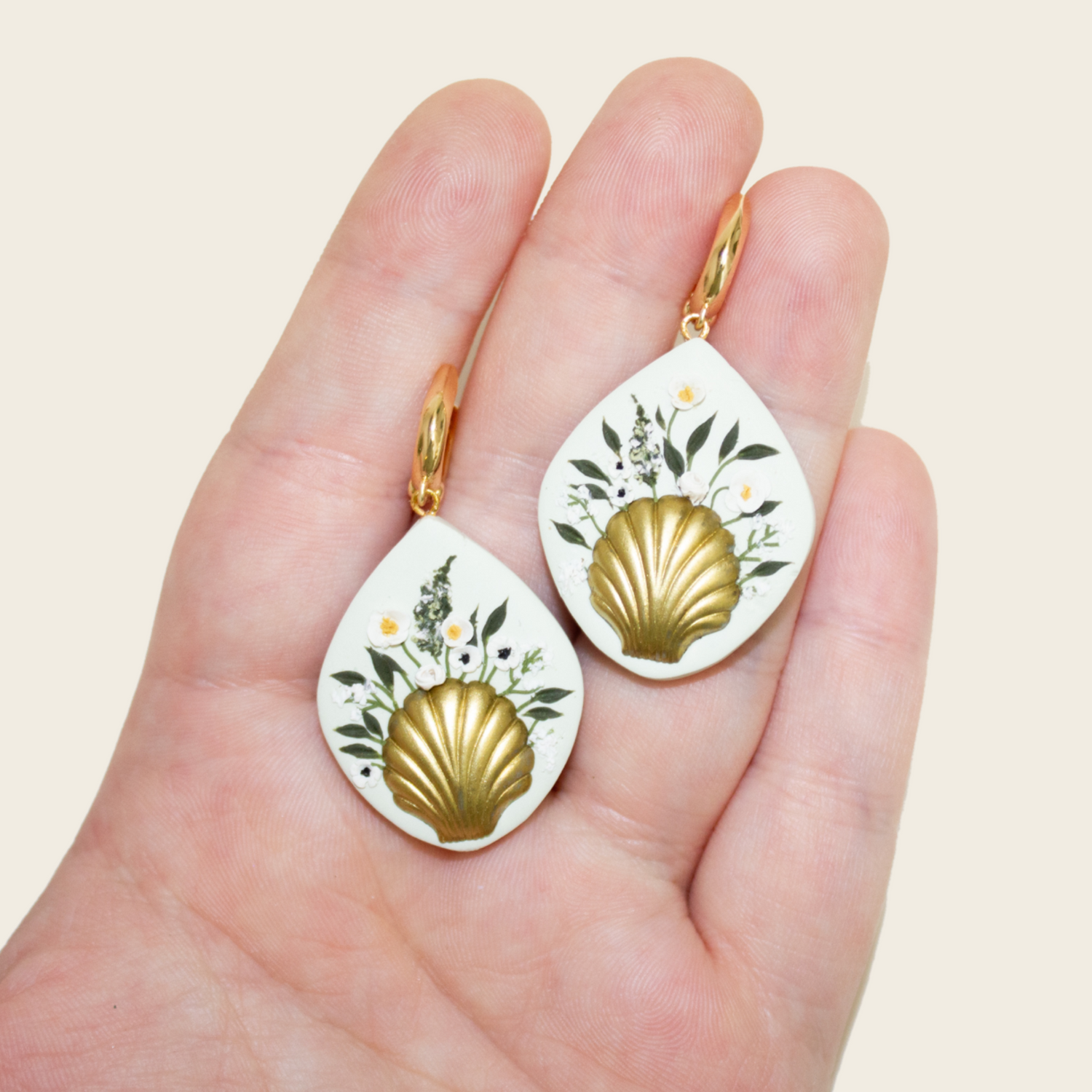 Sage Shell Bouquet Earrings | Classic Floral Series