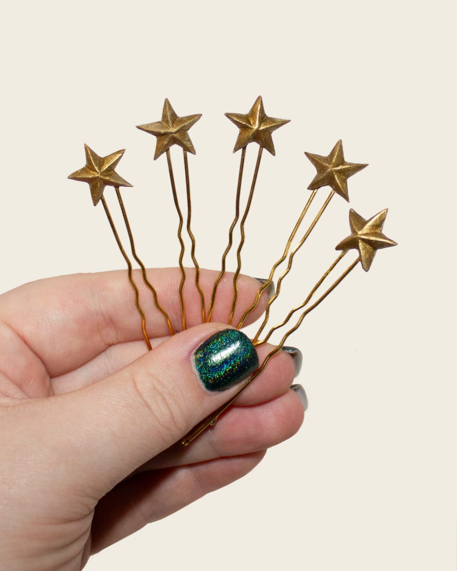 Boy, oh boy these are just a BEAUTIFUL addition to any fancy-wancy hairstyle (or just everyday wear!). They're shiny and celestial and will make you feel super cool. Set of 5!