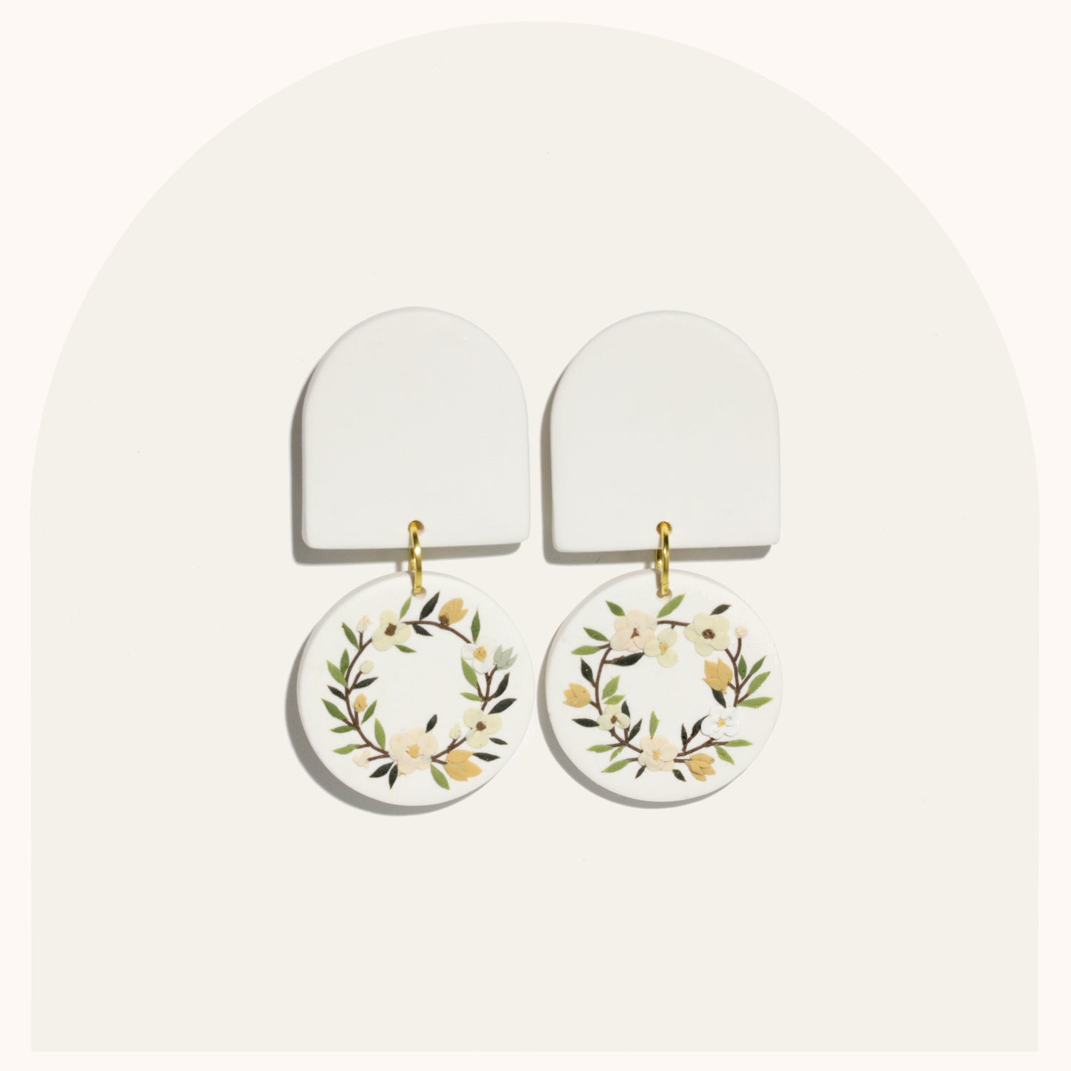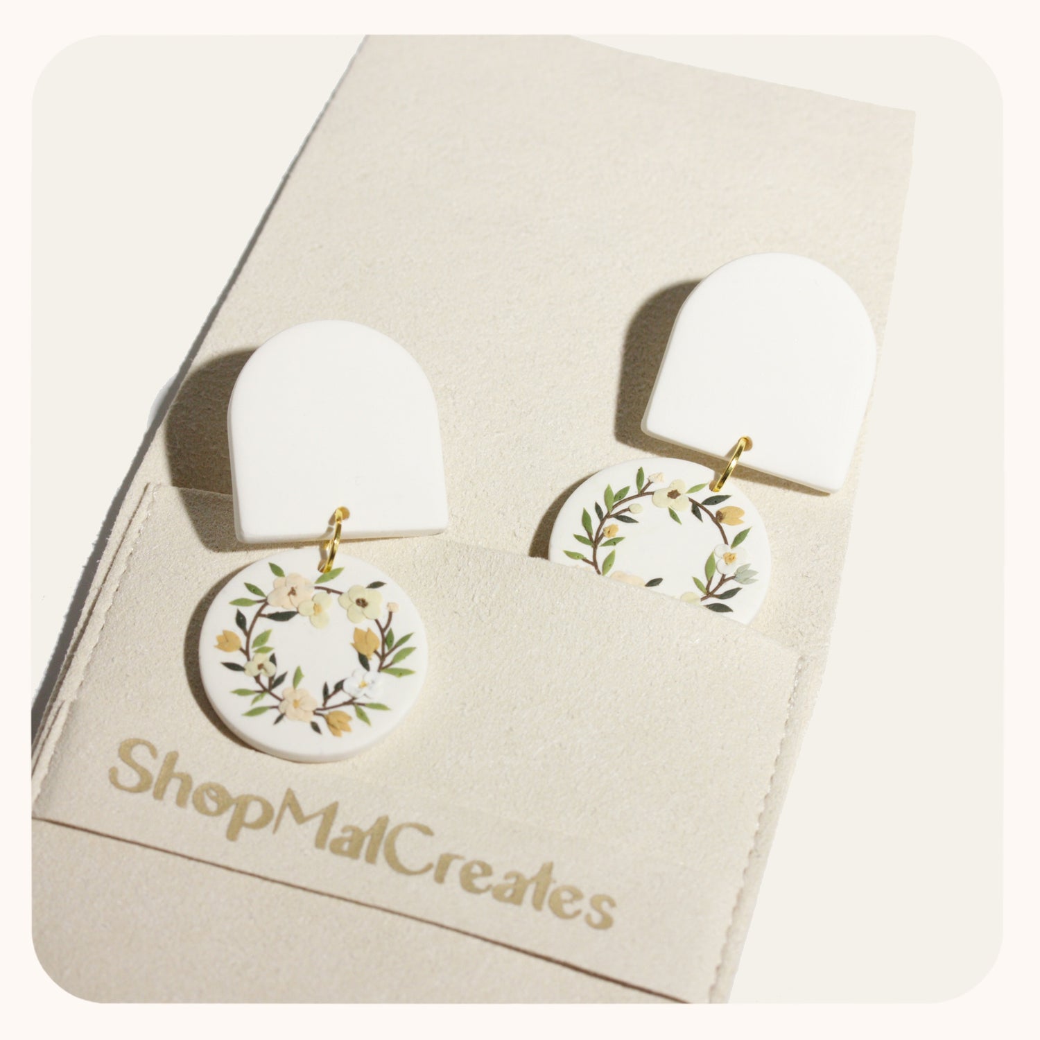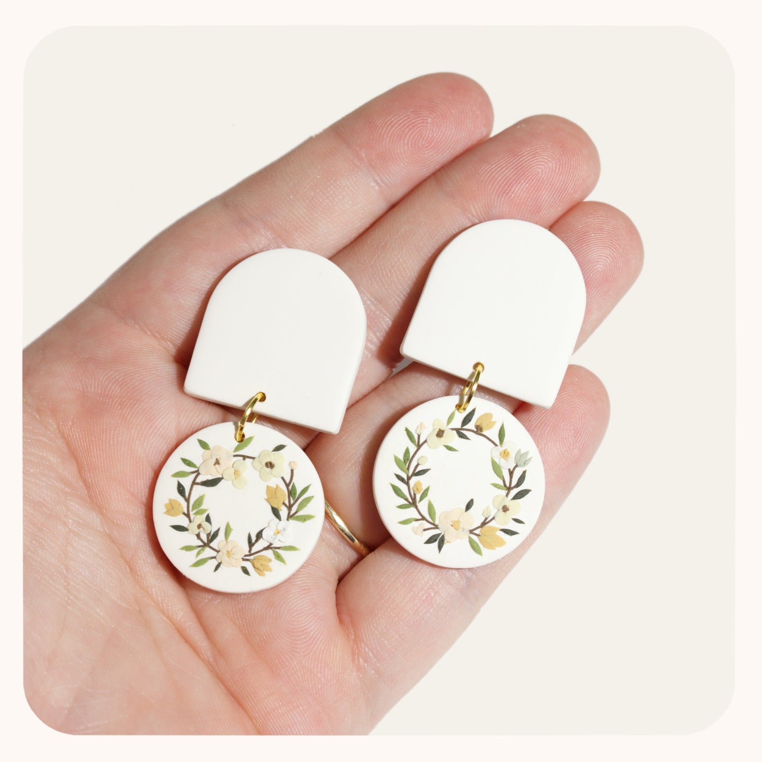 - These earrings are 100% polymer clay. I take special measures to ensure the petals and leaves stay where they're meant to be. I do recommend storing them in a safe place and treating them as you would treat any delicate, handmade jewelry!
