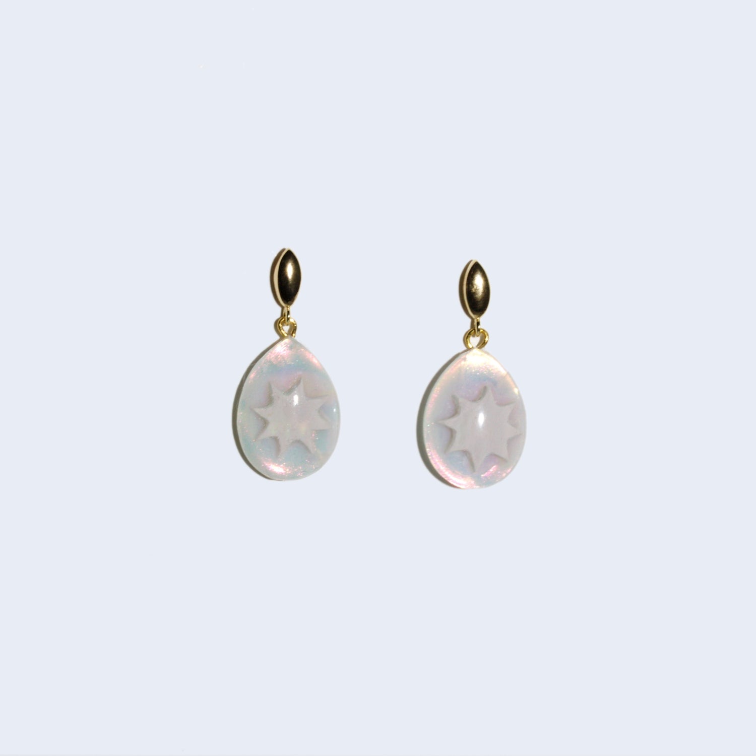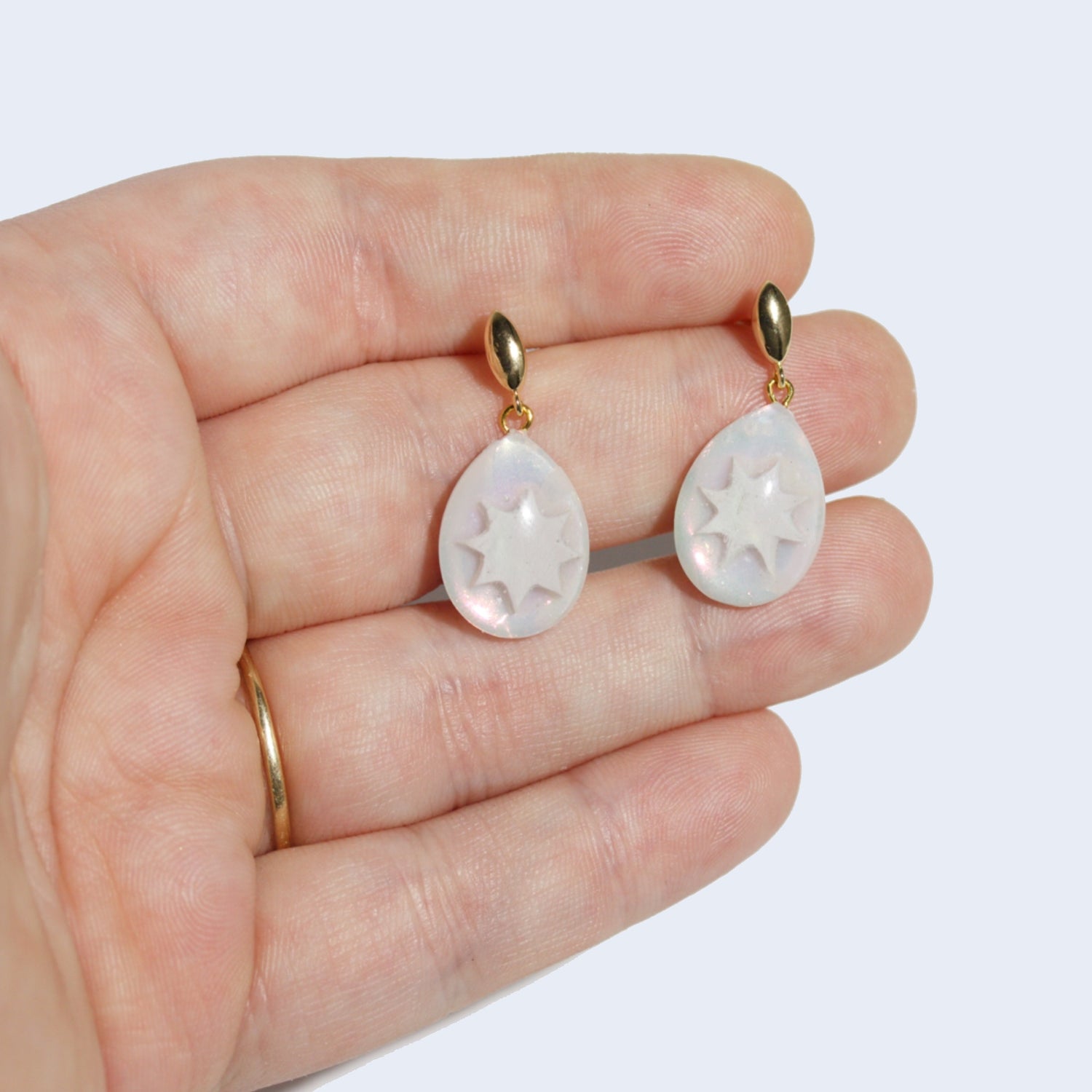 The starburst design is so fun, The clay star just pops on the multi-chrome background to give you the most adorable little earrings.