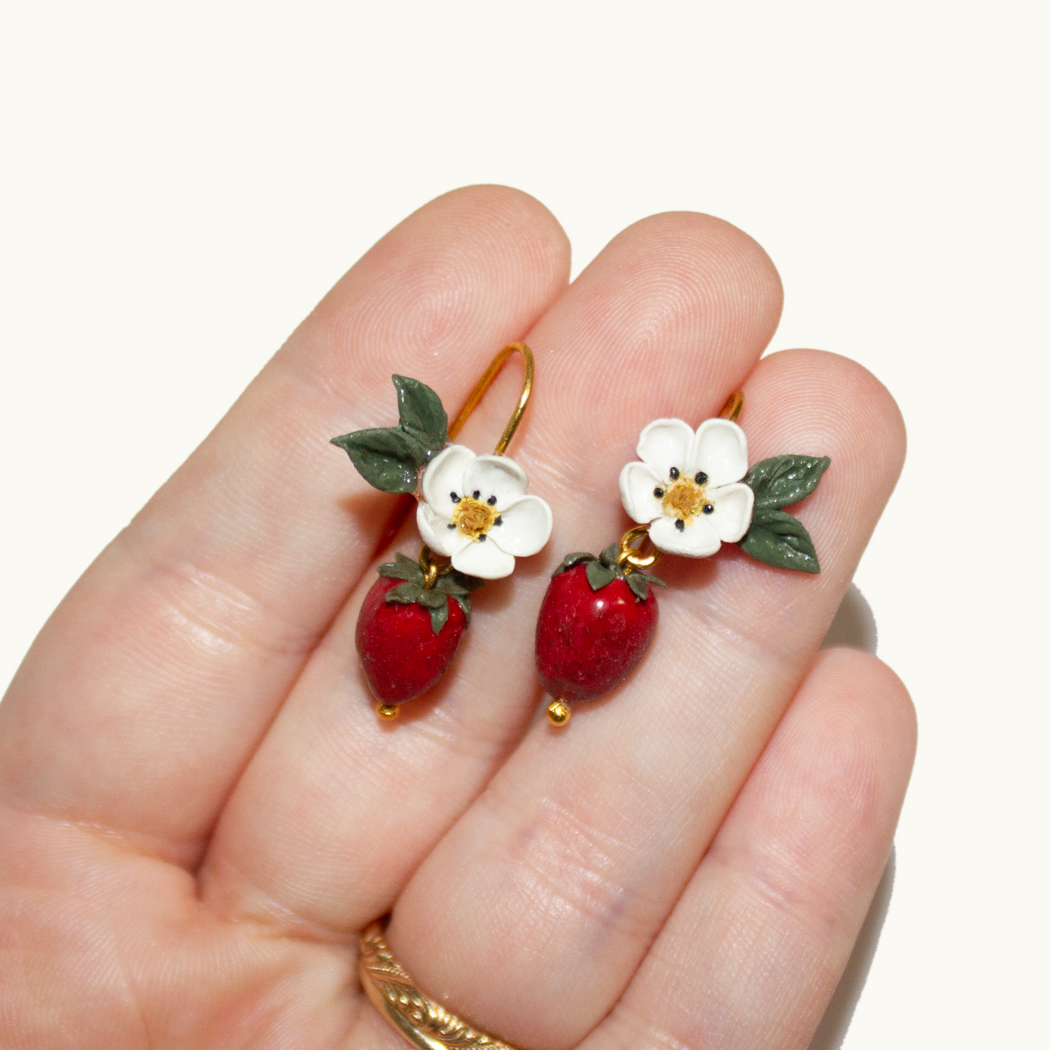 These earrings were the very first design in this collection! I knew I wanted a classic strawberry design you could wear all year that was super comfortable.