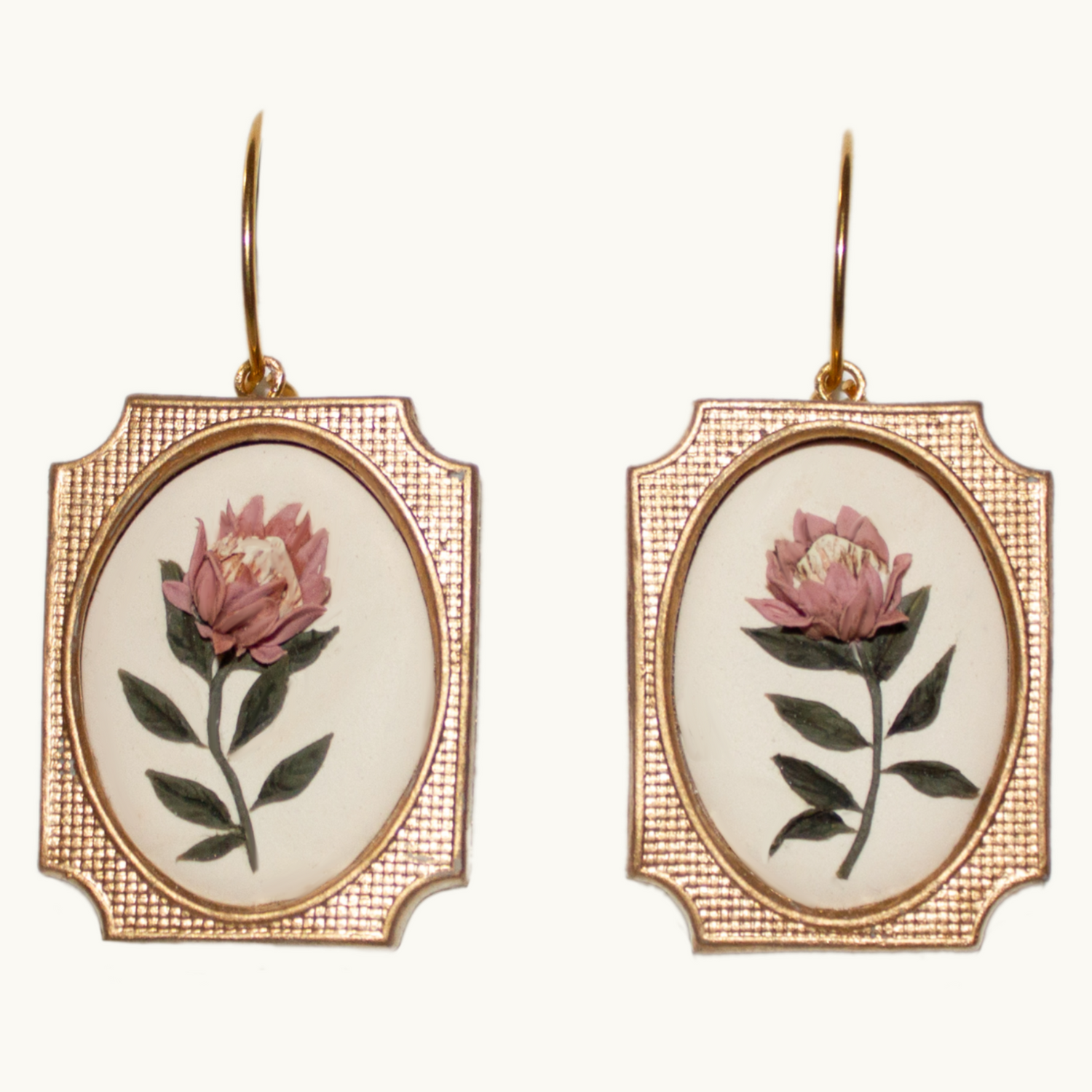 For these earrings, I really wanted to explore vintage florals. Think about the look of a framed piece of wallpaper...