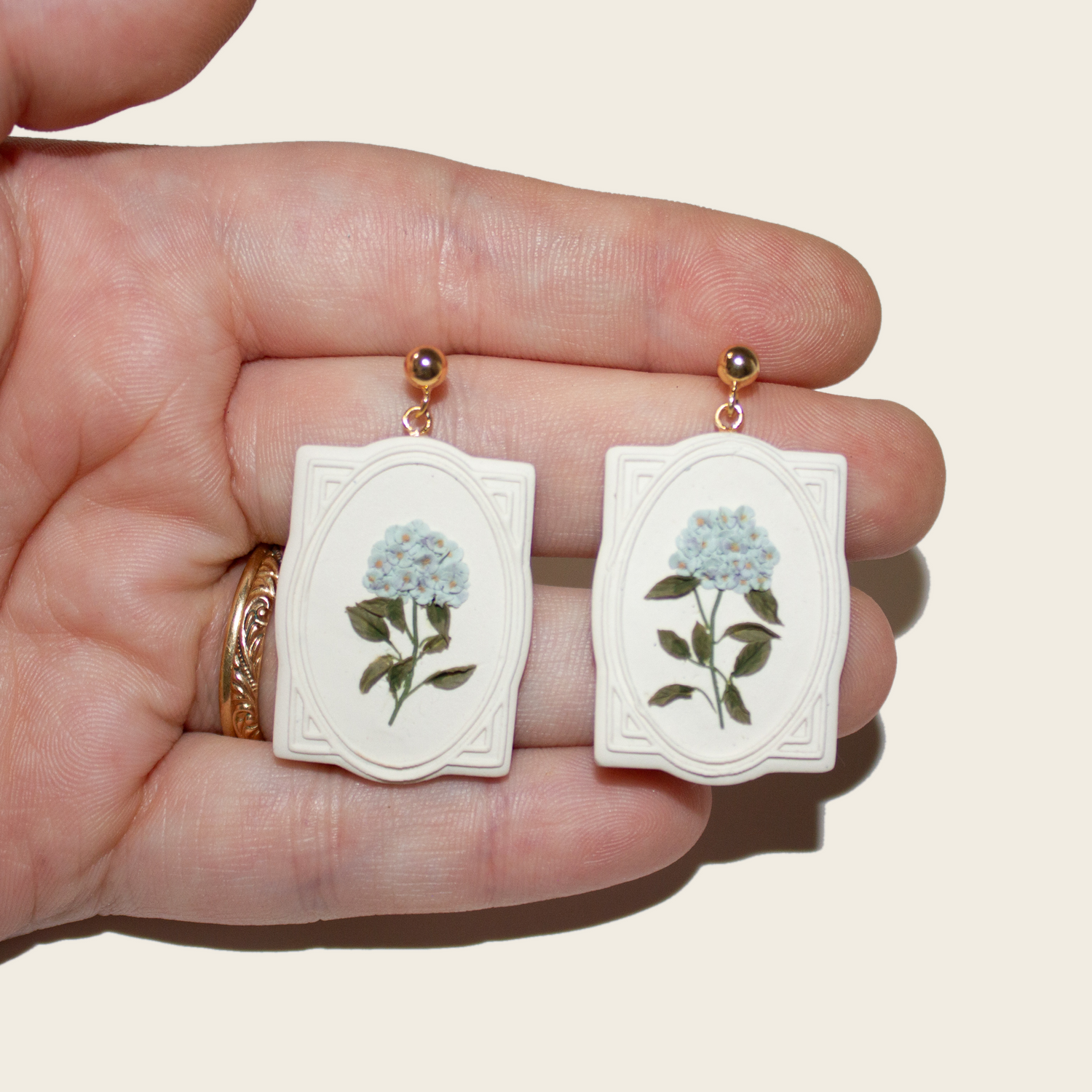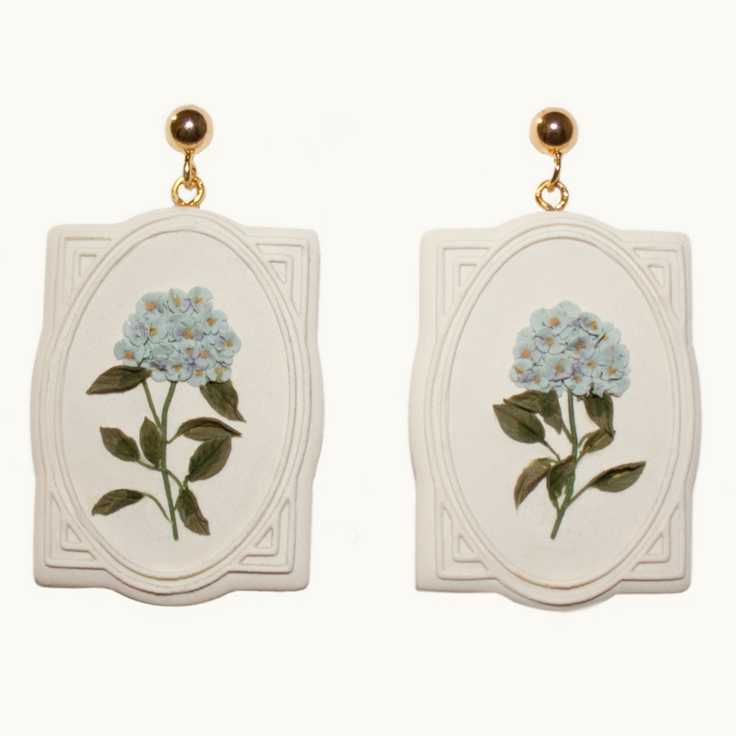 For these earrings, I really wanted to explore vintage florals. Think about the look of a framed piece of wallpaper...