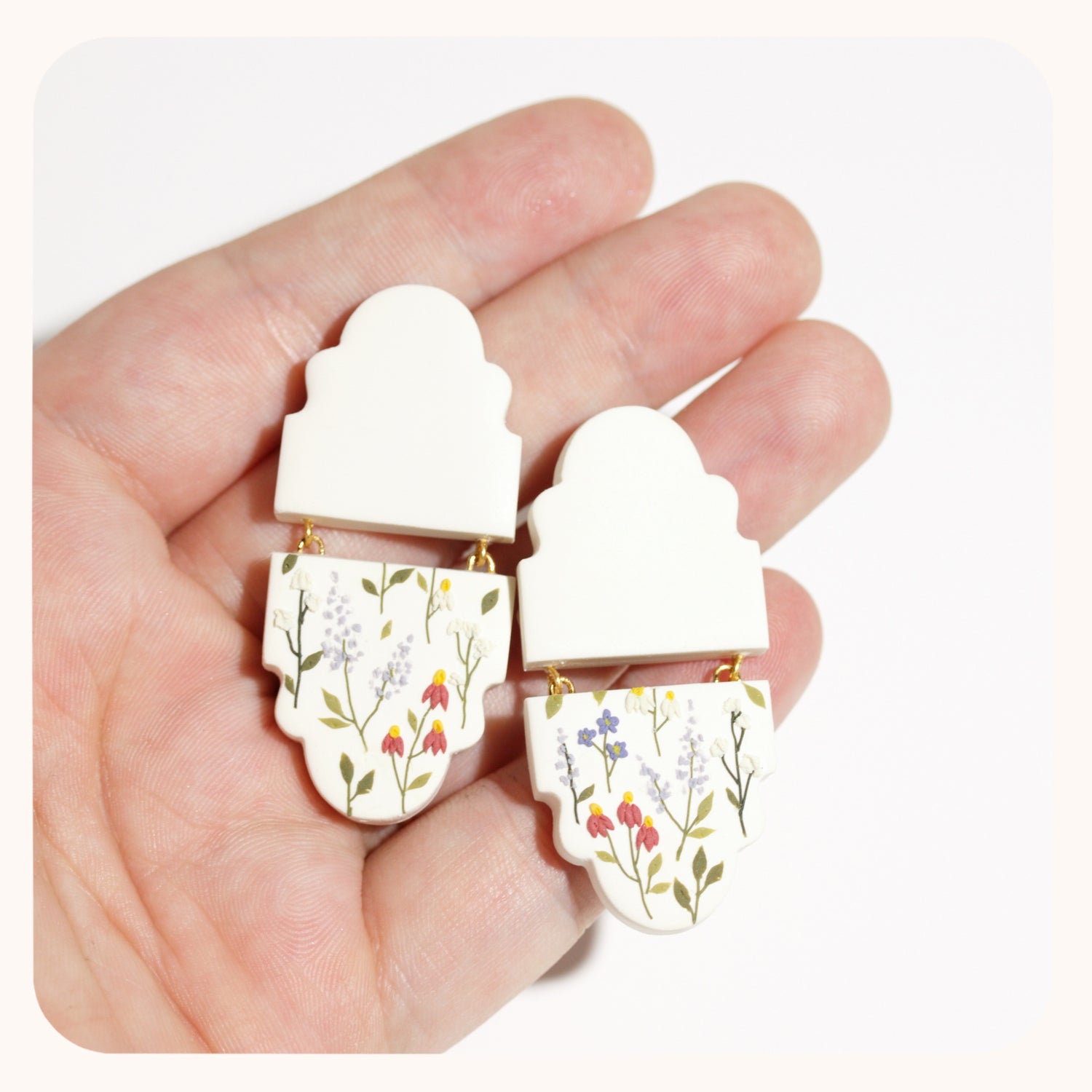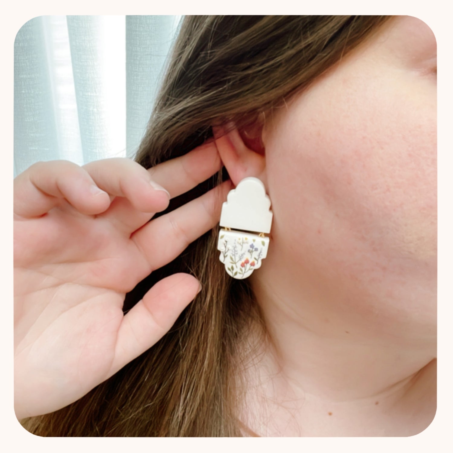 - These earrings are 100% polymer clay. I take special measures to ensure the petals and leaves stay where they're meant to be. I do recommend storing them in a safe place and treating them as you would treat any delicate, handmade jewelry!
