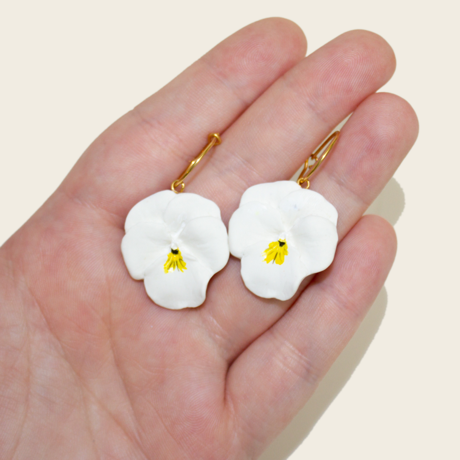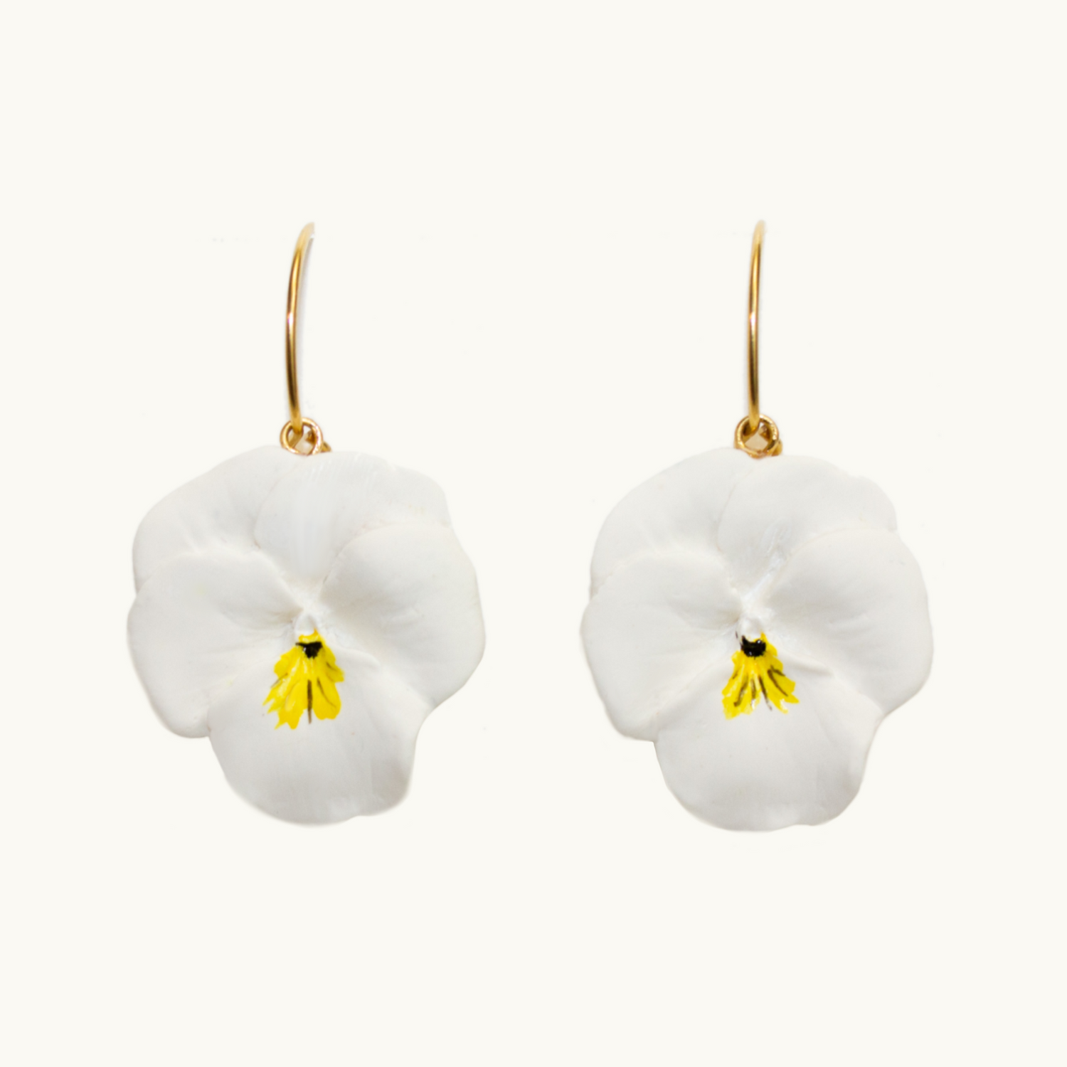 I love these earrings because they're so beautiful and understated! They're just white violet flowers with hand painted details on a gold-filled hoop earring. I've been wearing them non-stop because its impossible to find an outfit that doesn't match these!